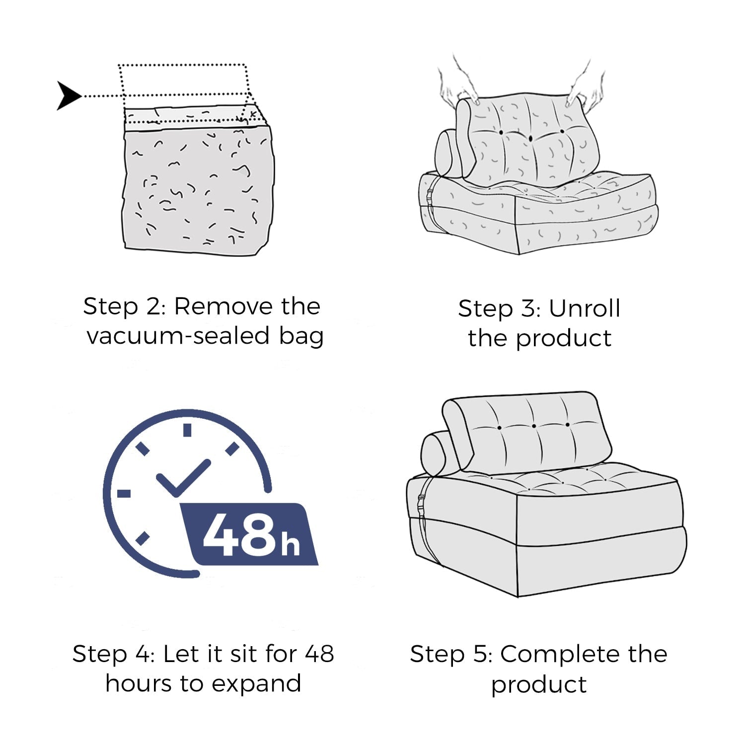 Convenient Shipping & Setup:Compressed and vacuum-sealed for shipping efficiency; allow 48 hours after unpacking for the sofa bed to regain its original shape.