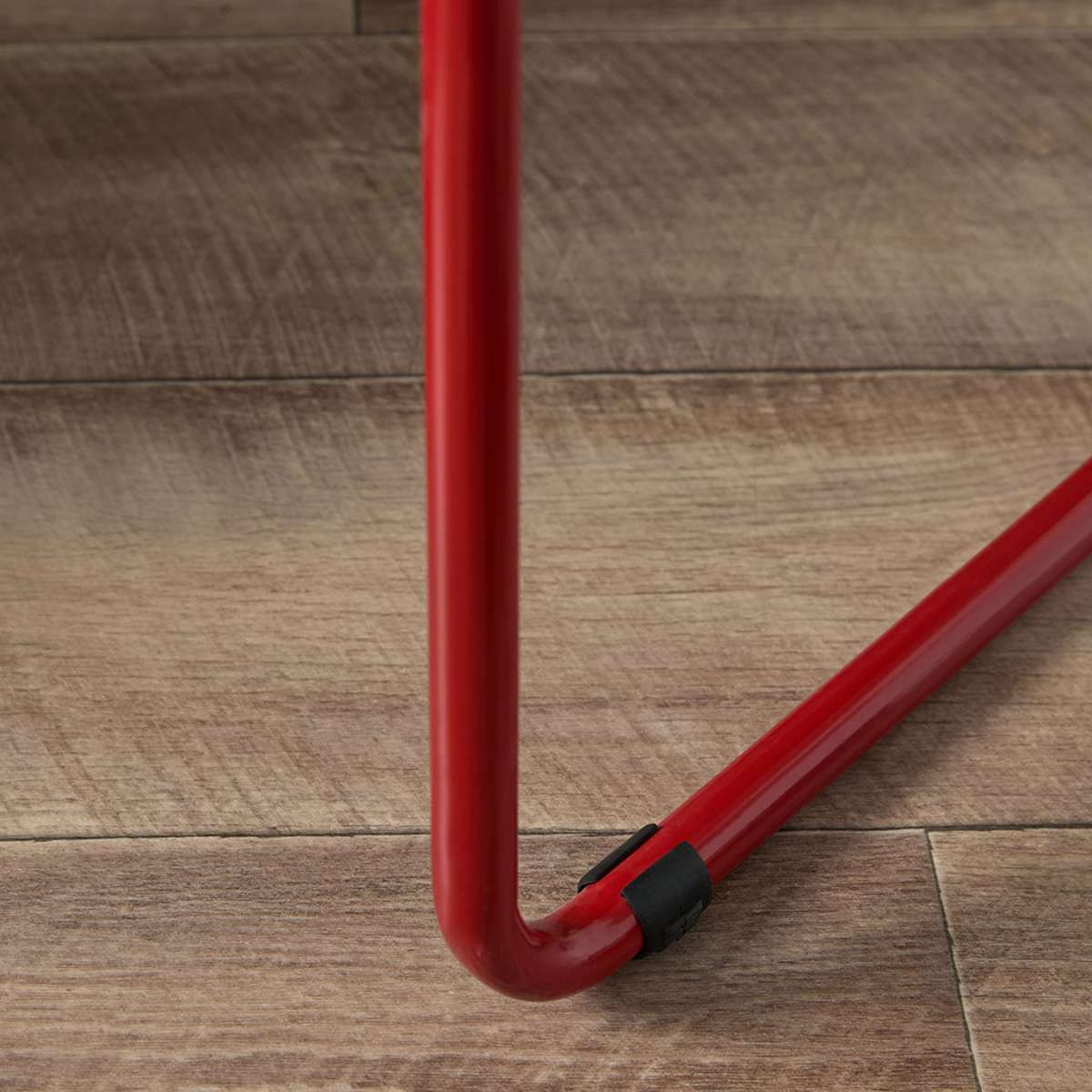With its bold red metal frame and textured pink fabric, this chair is a trendy addition to any room. It brightens up any space with its striking look and modern feel.