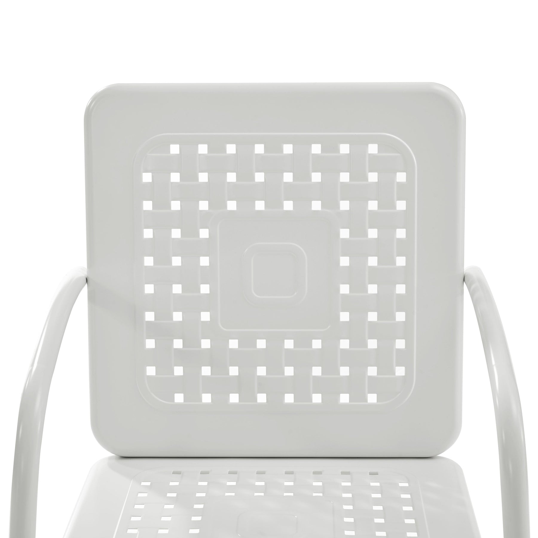 Relive the good old days with the Bates 3Pc Outdoor Chair Set, a fun and functional lounging experience for your outdoor space. The set includes two vintage-style chairs in vibrant colors and a simple metal side table, perfect for smaller outdoor spaces. Each chair features a square back with a unique basket weave design that ensures air circulation, offering added comfort. With its cantilever base, this sturdy steel construction provides just the right amount of flex for relaxation. The non-toxic powder-coated finish and UV resistance guarantee long-lasting quality.