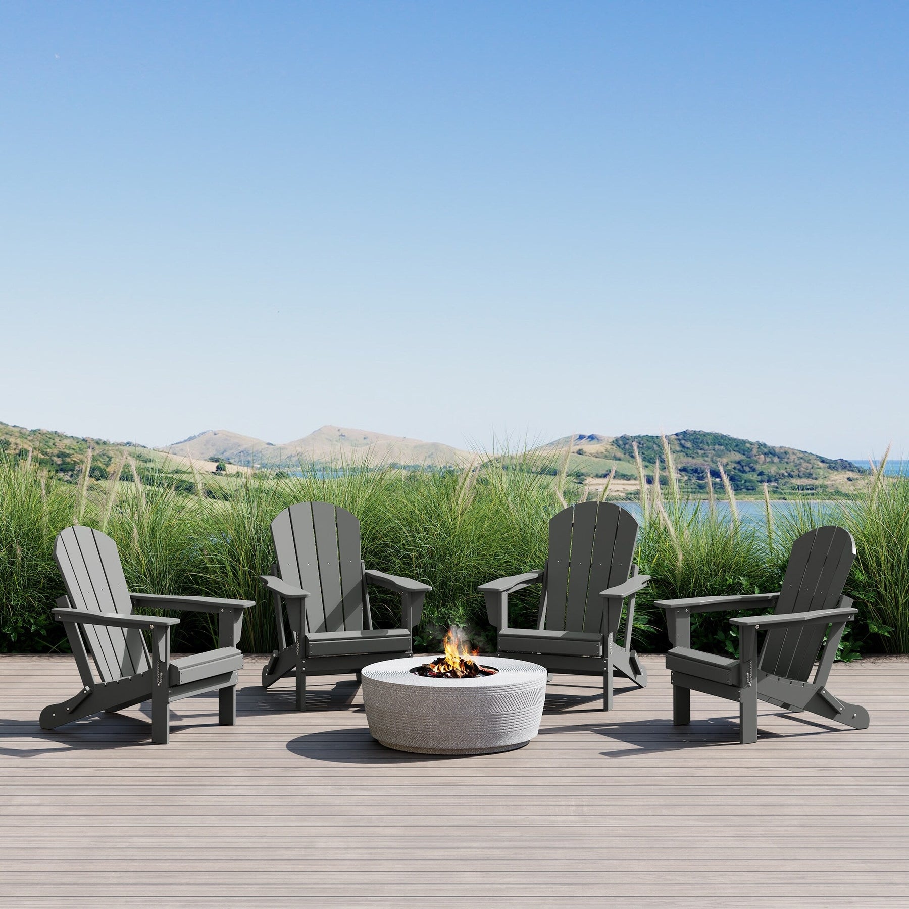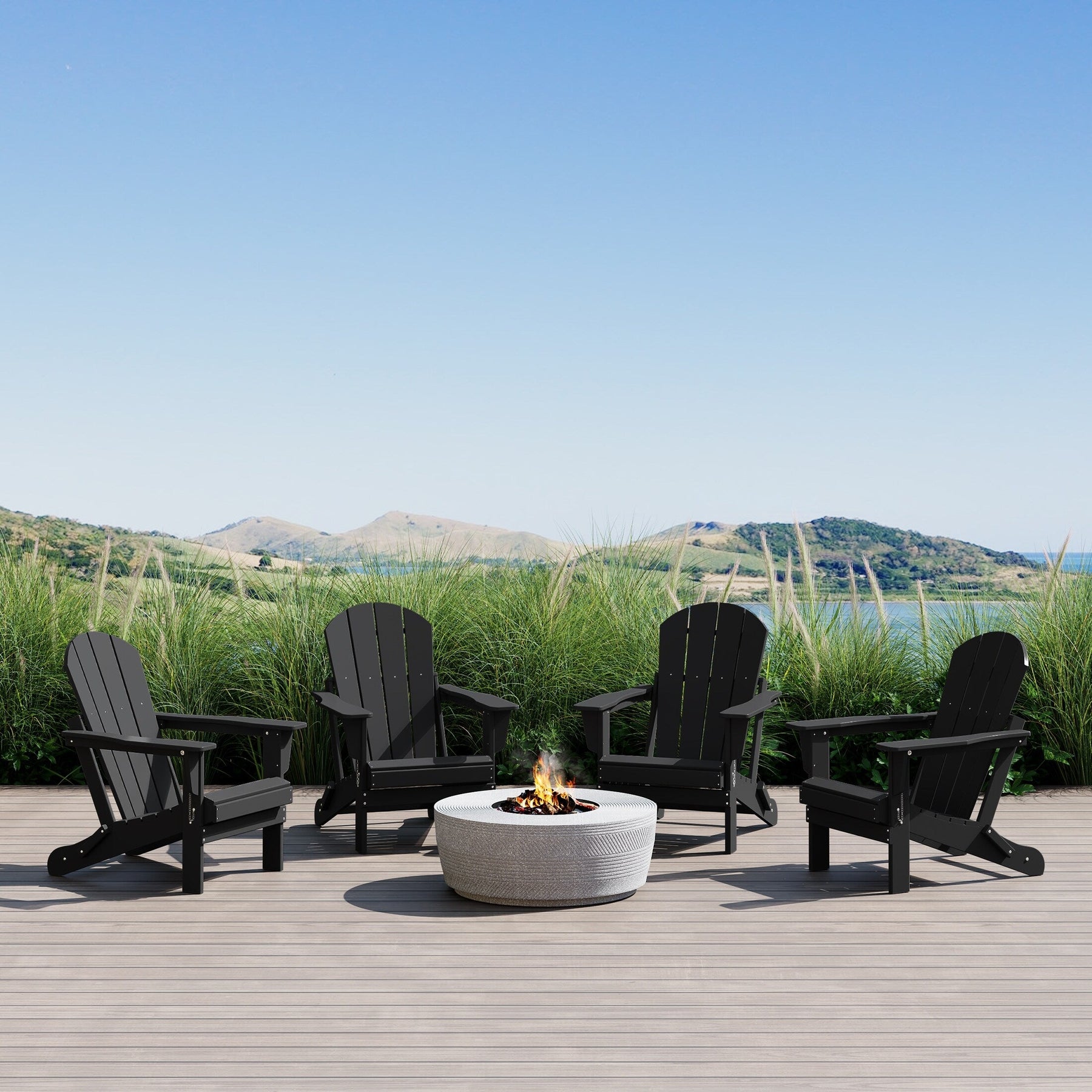 - Set Includes: Four (4) Poly Adirondack Chairs