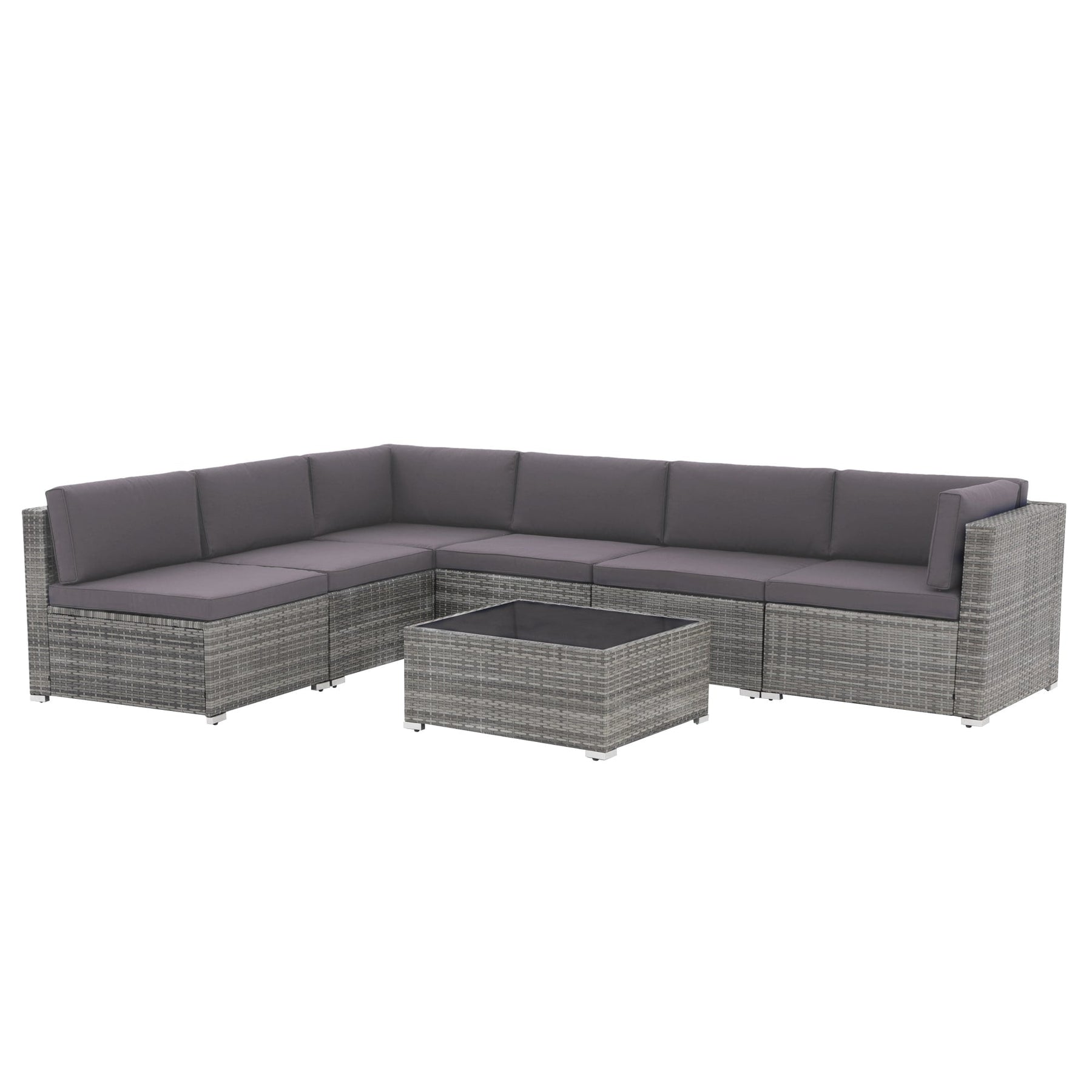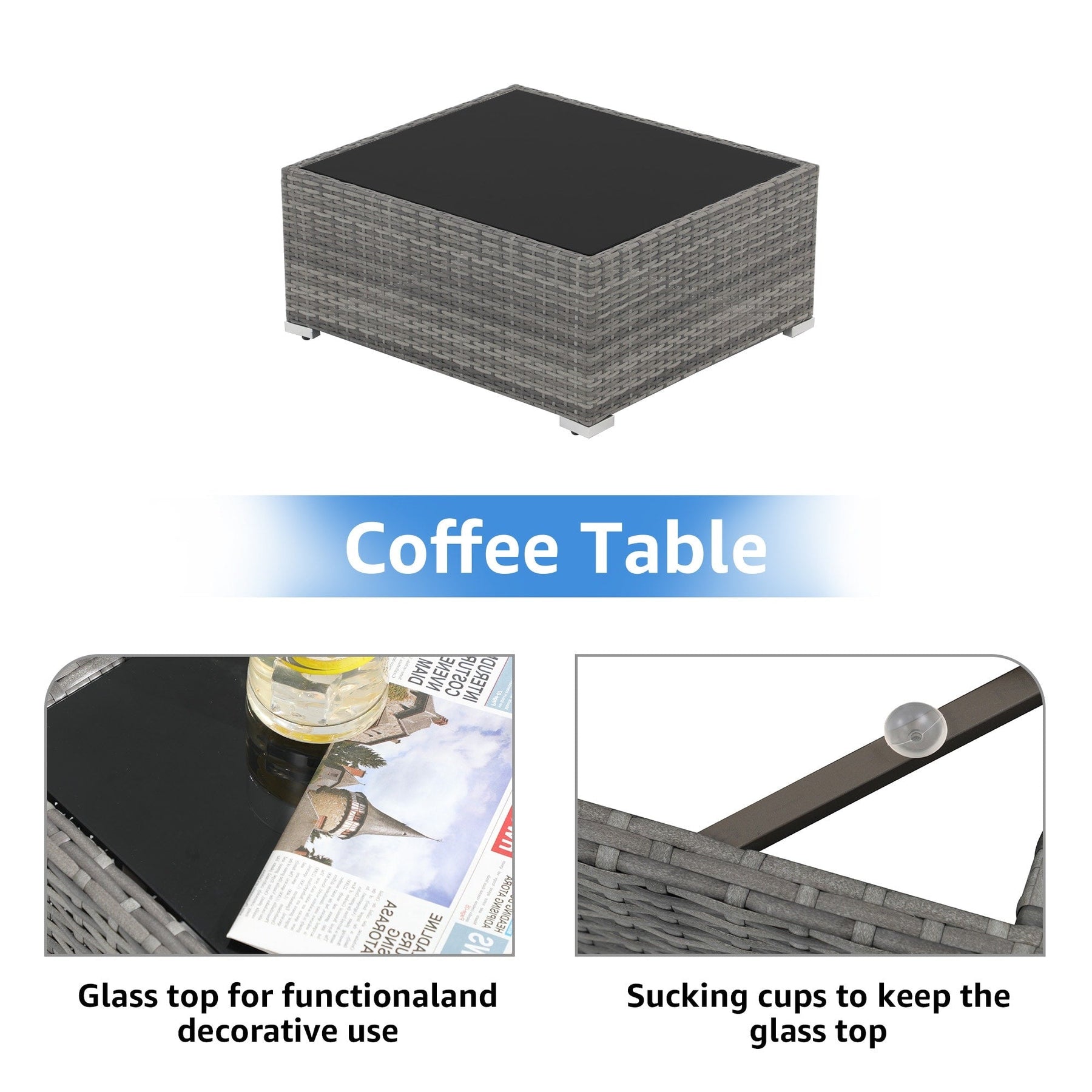 Add elegance and comfort to your outdoor space with the Wicker/ Steel 7-piece Outdoor Cushioned Sectional Sofa Set. The set features a sturdy steel frame wrapped in durable wicker that resists rust and outdoor elements. Cushions on each seat provide maximum comfort. With easy assembly and multiple configurations available, you can customize the set according to your needs.  In addition, a side table is included for added functionality and decoration.