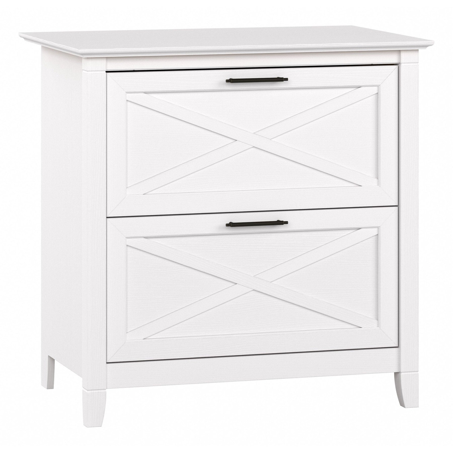 A natural fit for homes that embrace coastal and farmhouse decor, the Bush Furniture Key West 2 Drawer Lateral File Cabinet is perfect for organizing paperwork in virtually any room. Two file drawers open on smooth full-extension ball bearing slides for an easy reach to legal and letter size documents. A unique X pattern accent on the drawer panels creates a relaxed style supported by a sturdy and attractive post leg design. This 30W x 20D x 30H lateral filing cabinet matches the height of any Key West Desk (sold separately) to create an extended work surface when placed side by side. Choose from a variety of casual finish options to find the perfect look for your space. The Key West Collection offers a wide variety of farmhouse furniture that makes building a complete home office or living room ensemble a breeze. This 2 drawer filing cabinet is tested to meet ANSI/SOHO quality standards for safety and performance and is backed by the Bush Furniture 1 Year Manufacturer's Warranty. See the full collection for coordinating items available.