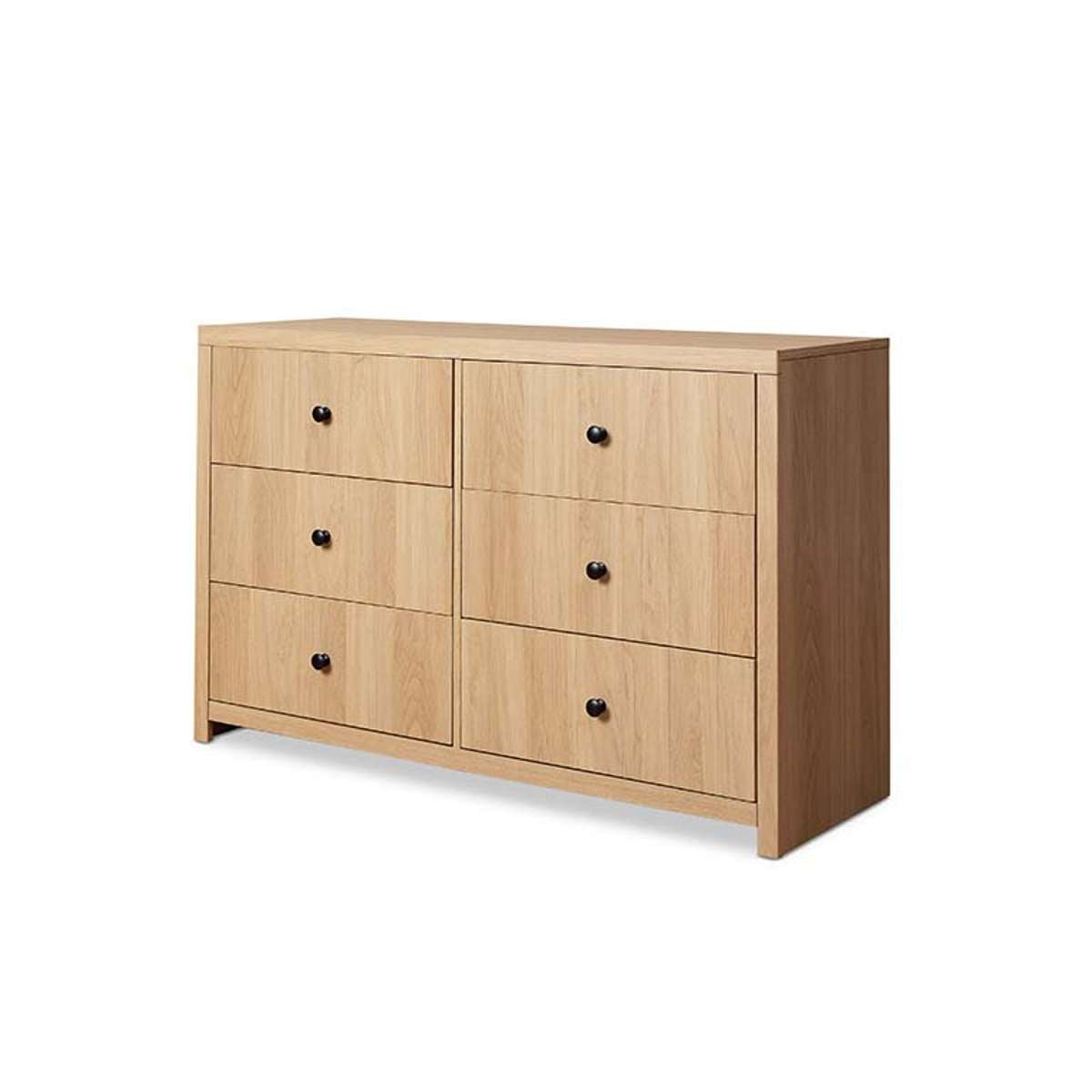 Bring timeless farmhouse charm to your home with the Portland Six Drawer in Natural. Featuring six sliding drawers with black metal knobs, a warm wood-look finish, and groove detailing, this versatile piece is perfect for bedrooms or living spaces. Its classic design offers a practical storage solution while complementing a variety of interior styles.