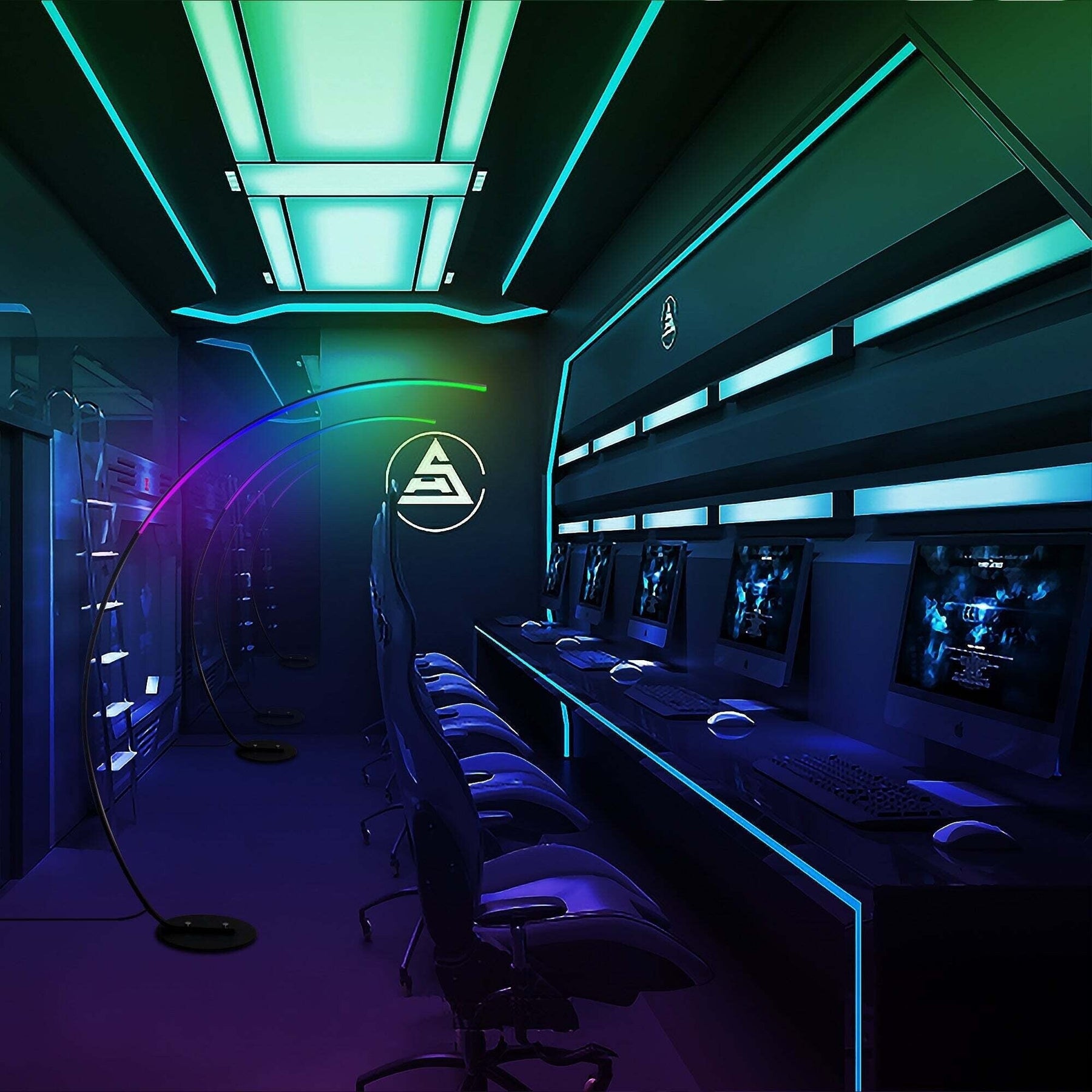 The 69' Arched RGBW Floor Lamp is a customer favorite and is known for its simple, stylish design and warm welcoming glow. It has a slender design, making it easy to position, and a steady base. It has an easy-to-use foot switch and a 98' cord, and provides 358+ dynamic lighting effects.  It is suitable for open spaces, behind a sofa or personal couch. Assembly only requires a screwdriver.