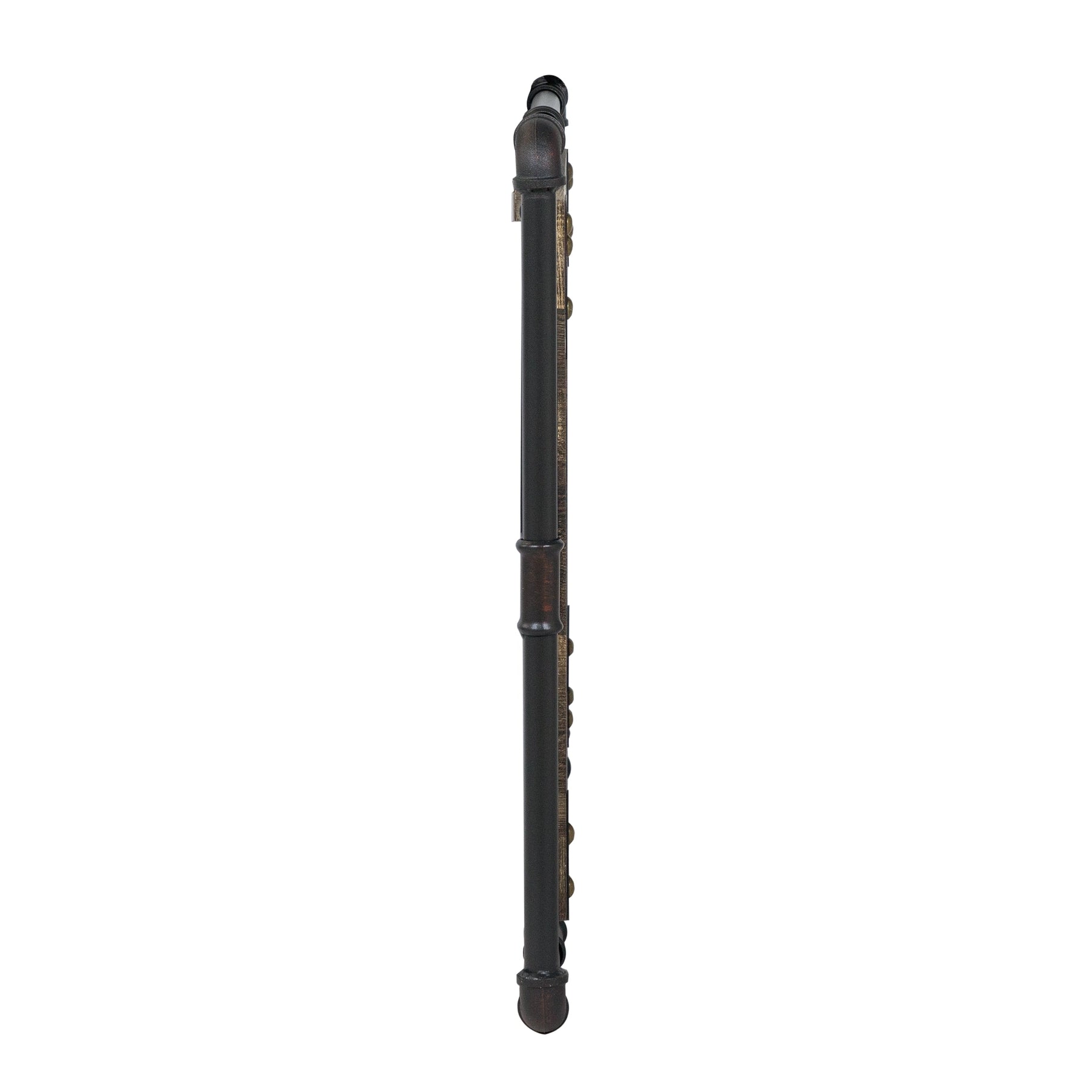 Pairing cool industrial style with modern technology, this lighted wall mirror is a striking choice for a vanity or bedroom. It features a steel pipework outer frame in a dimensional sand black finish. Golden copper finish oversized nail heads punctuate the four corners of the mirror. The interior frame boasts a wood grain finish to surround the modern lighted mirror at its center, perfect for daily grooming.