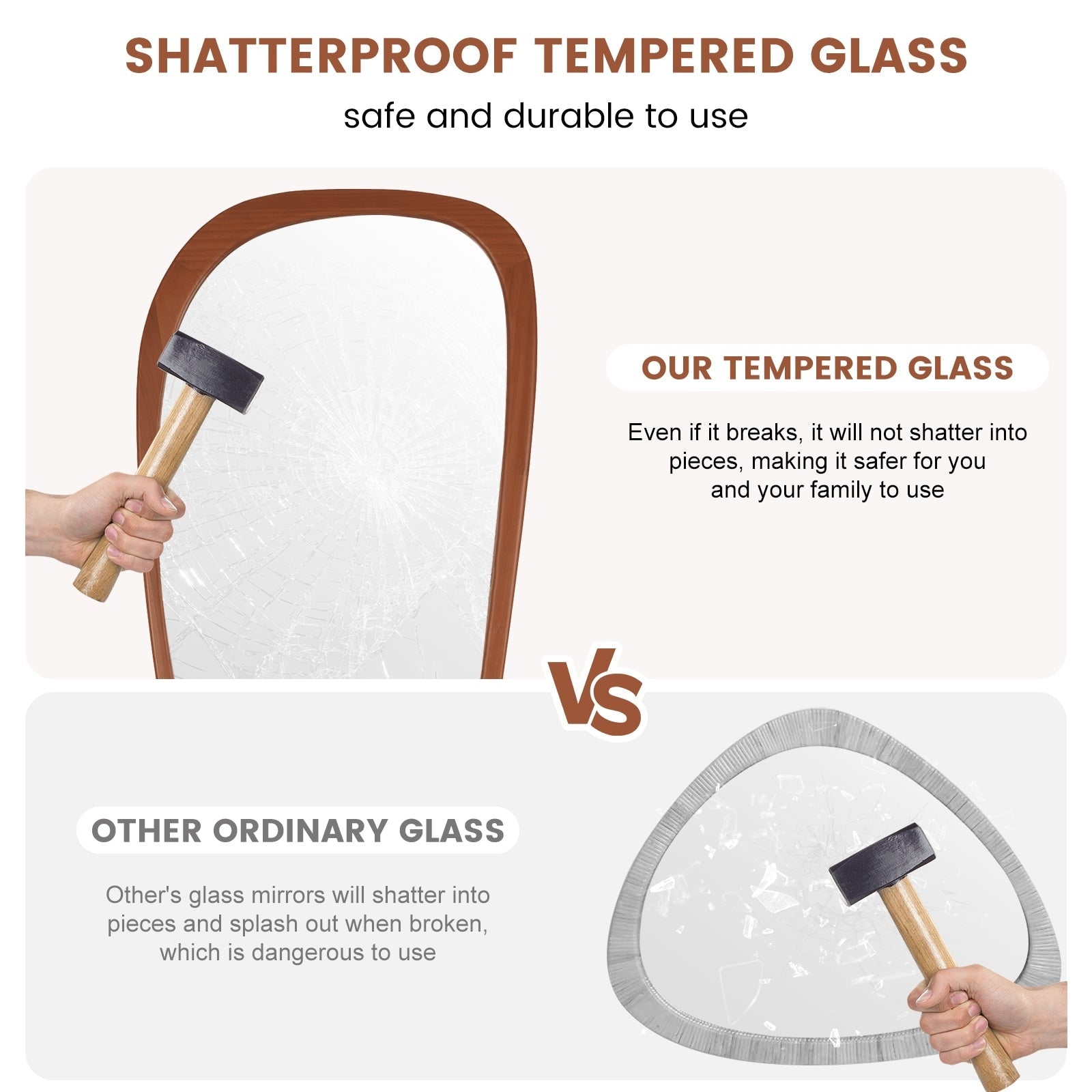 • This unique mirror with an irregular shape is perfect for adding a touch of art to your living space. It's suitable for various areas of the home, like the living room, bedroom, bathroom, hallway, or entryway.