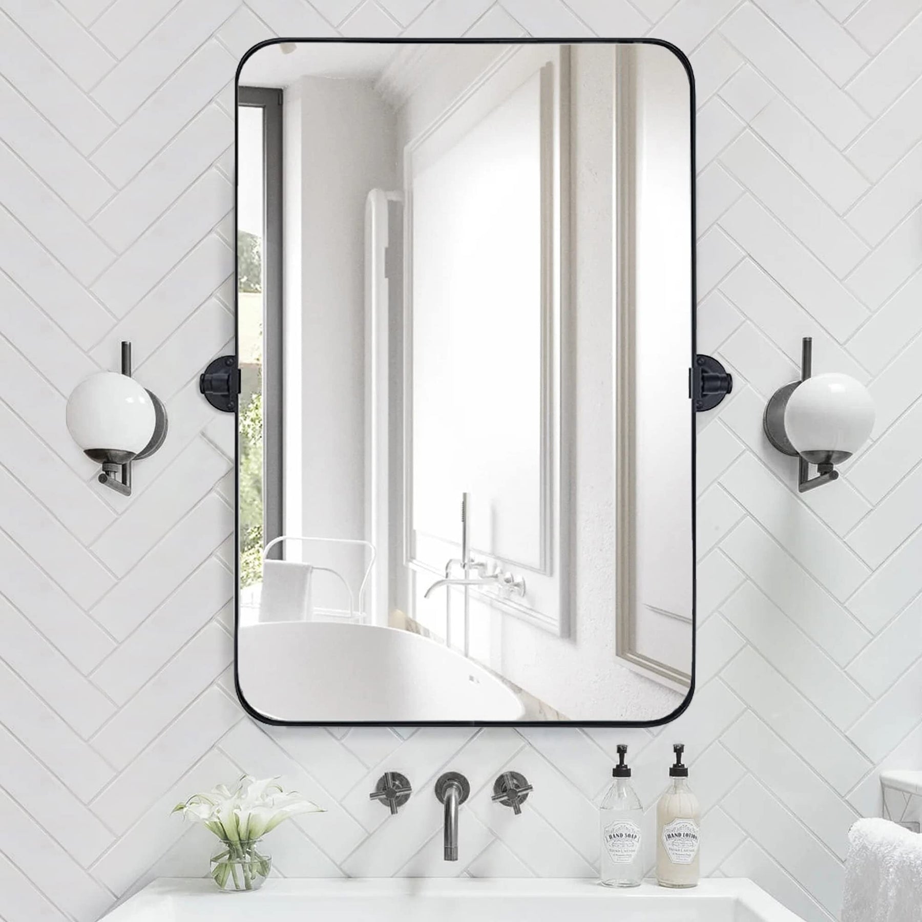 Featuring a sleek look and functional details, our tilt swivel mirror has a straightforward style that's incredibly timeless. A pivoting design lets you adjust this mirror so you can maximize the view, coming with a 1-inch deep stainless steel frame and solid wood backing, making it super safe for bathroom use.