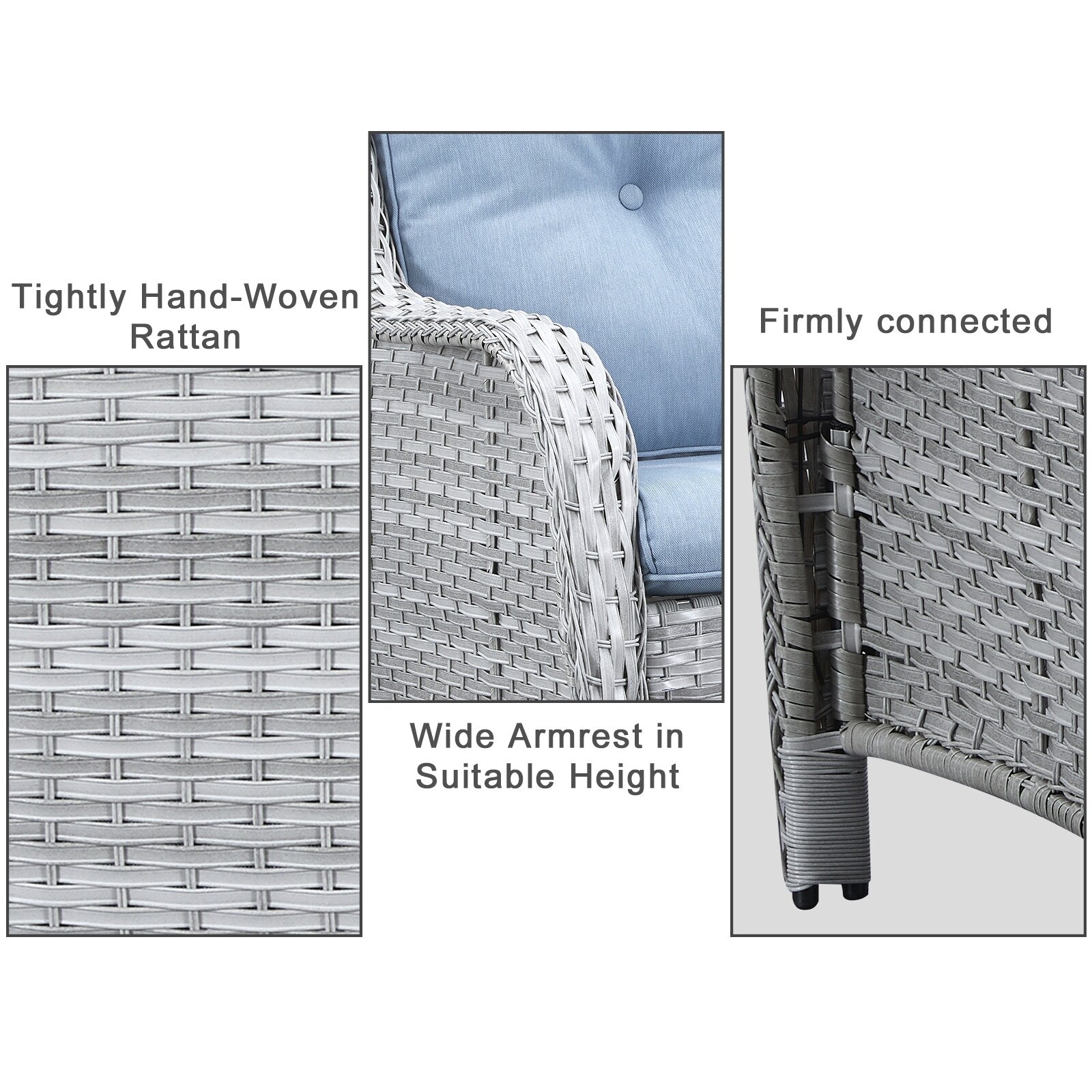 【Sturdy & Durable】This outdoor patio conversation sets is constructed with hand woven with weather-resistant PE rattan & powder-coated steel frame to make the outdoor seating set sturdy and durable for a long lasting outdoor use.