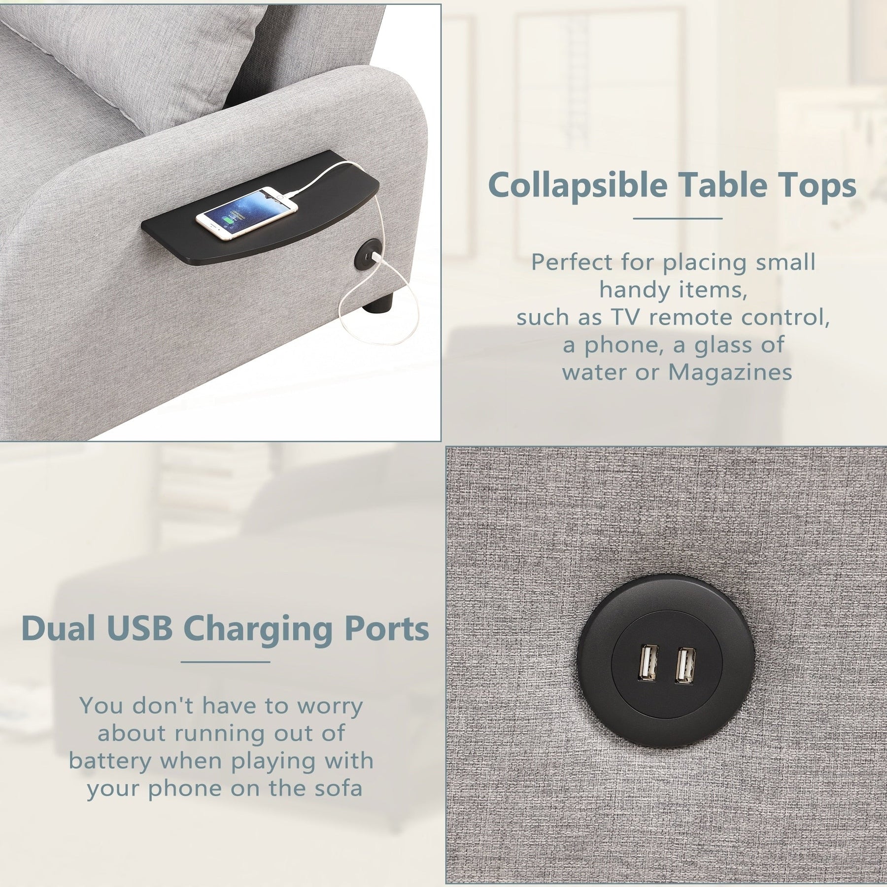 Wing table and Usb charge - The collapsible table top is like a pair of small wings that can hold small handy items, such as a phone or a glass of water. Using every inch of space as wisely as possible. The usb charge can avoid the clutter of wires and make your room look more tidy.