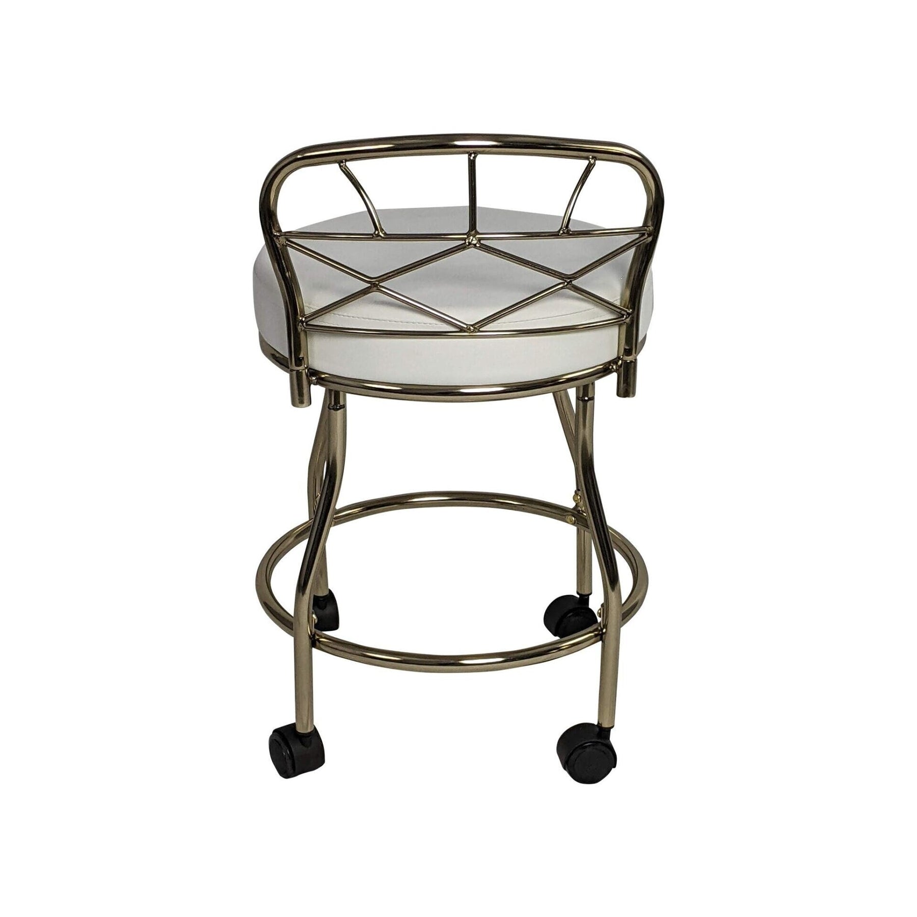 This elegantly designed bathroom/dressing vanity stool is crafted with the perfect proportions. Lovely and functional with four casters for easy mobility. The uniquely and attractively designed back provides simple and reliable support for your dressing needs.