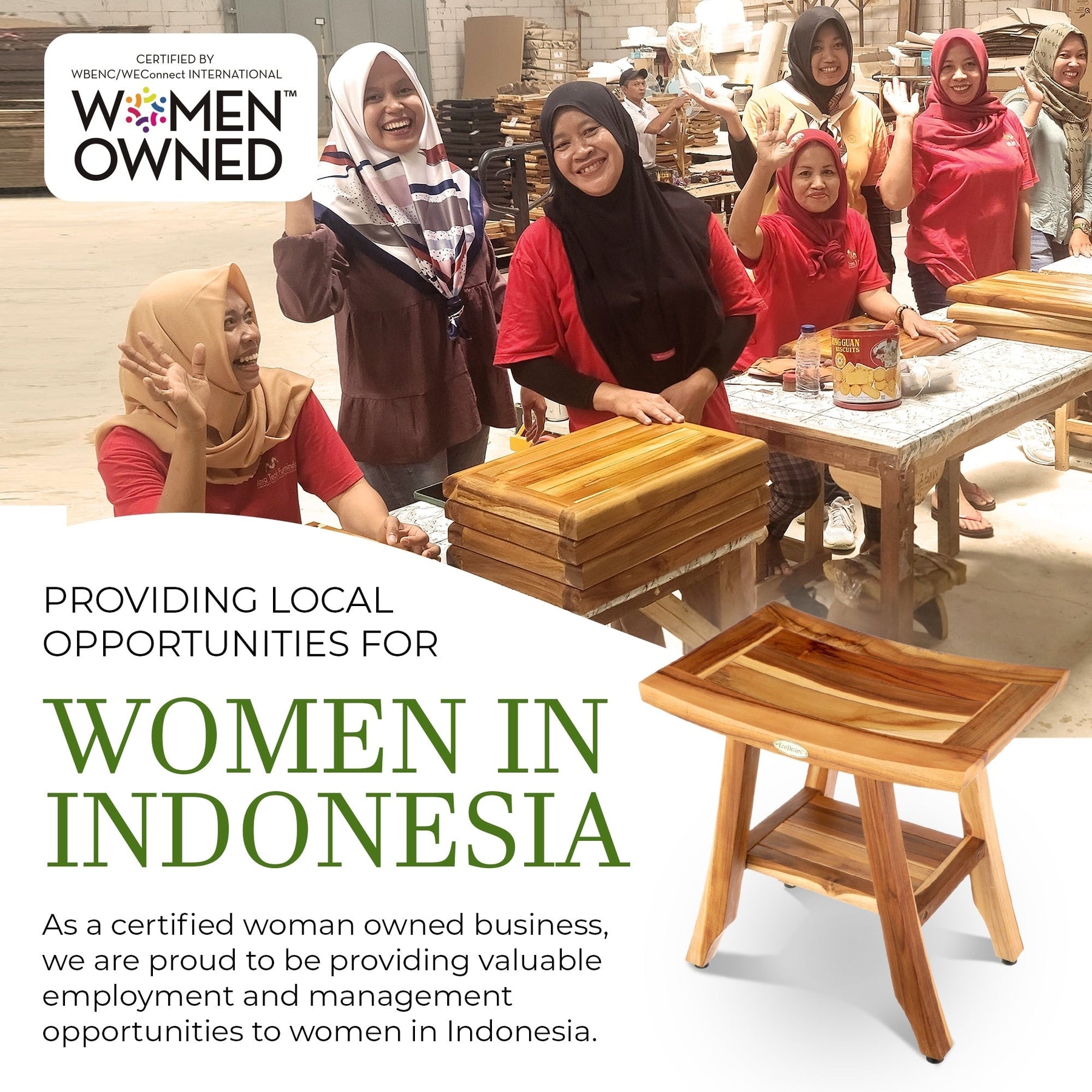 - Created with Care: Proudly designed by a woman-owned company, the Satori shower teak bench represents a commitment to both quality craftsmanship and diverse business ownership. This wooden shower bench seamlessly blends aesthetics with functionality.