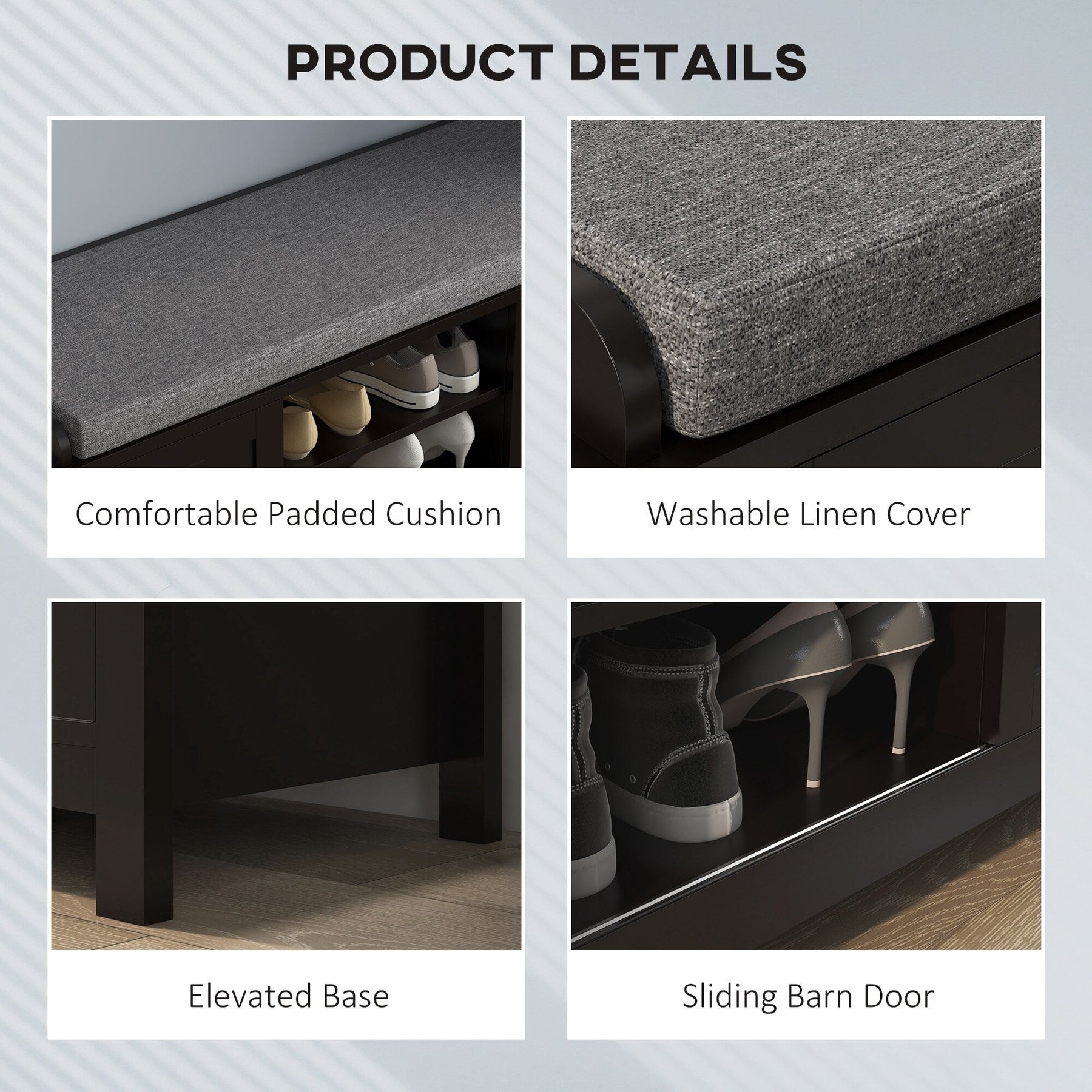Wave goodbye to unneeded clutter with this versatile shoe bench from HOMCOM. This storage bench features 6 compartments total to keep all your shoes tidy and organized. The top padded seat provides you a comfortable place to sit. You can change your shoes while sitting and put your shoes on the bottom shelf. The frame is constructed of high-quality particleboard which is solid and tough enough to ensure it keeps in shape. This mid-century style shoe storage bench can be used for various indoor areas, such as the entryway, living room, and bedroom, which will be both a great accent piece and functional addition to your home.