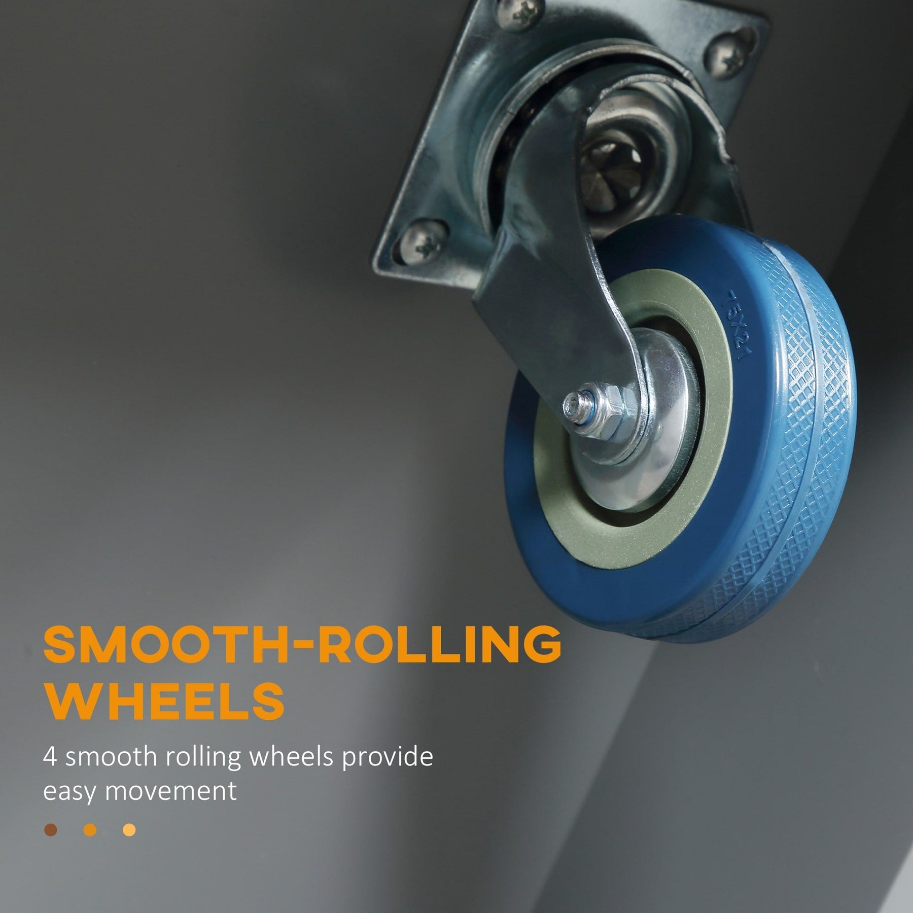 Add elegance and extra storage to your home with this rolling kitchen cabinet organizer from HOMCOM. It features a stainless steel top allowing for heat resistance and extreme durability. The drawers and cabinets can be used as a pantry to store dishes, basins, pans, etc. A spice rack, towel rack, knife rack, and wooden handle on both sides of the kitchen cart offer even more convenience and an effortless way to transport it. Make your house a home with HOMCOM.