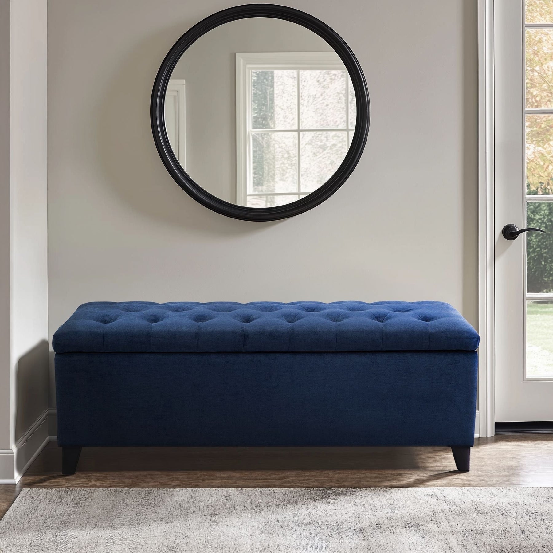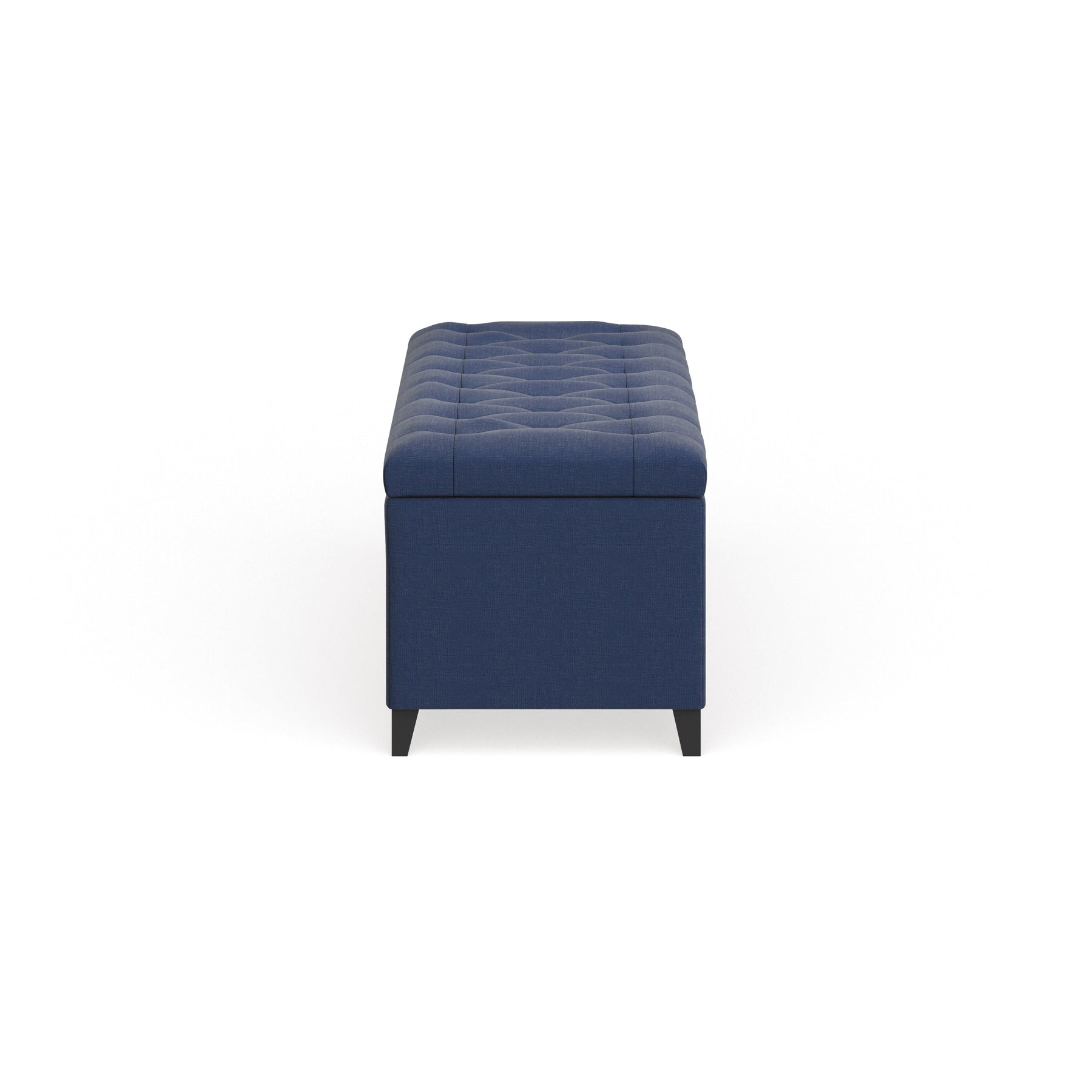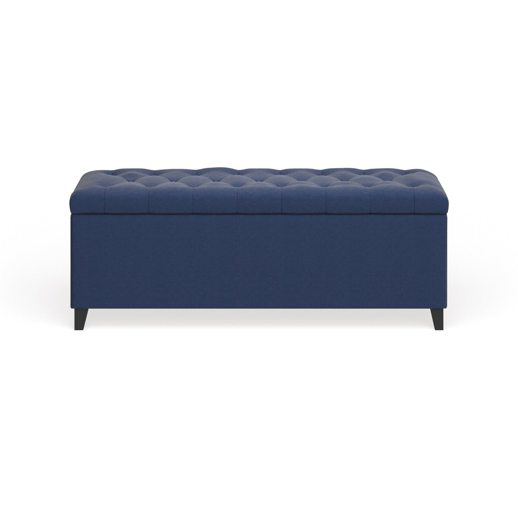 - Fully upholstered storage bench with tufted button seat