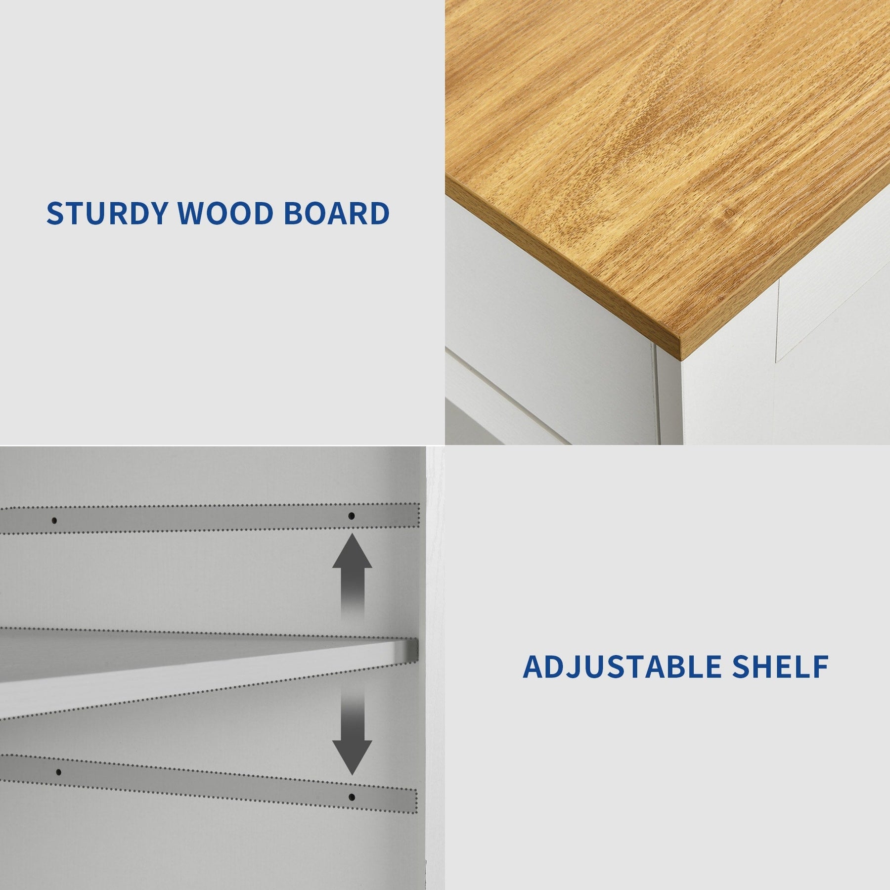 - Adjustable interior shelf fits various sized kitchen items.