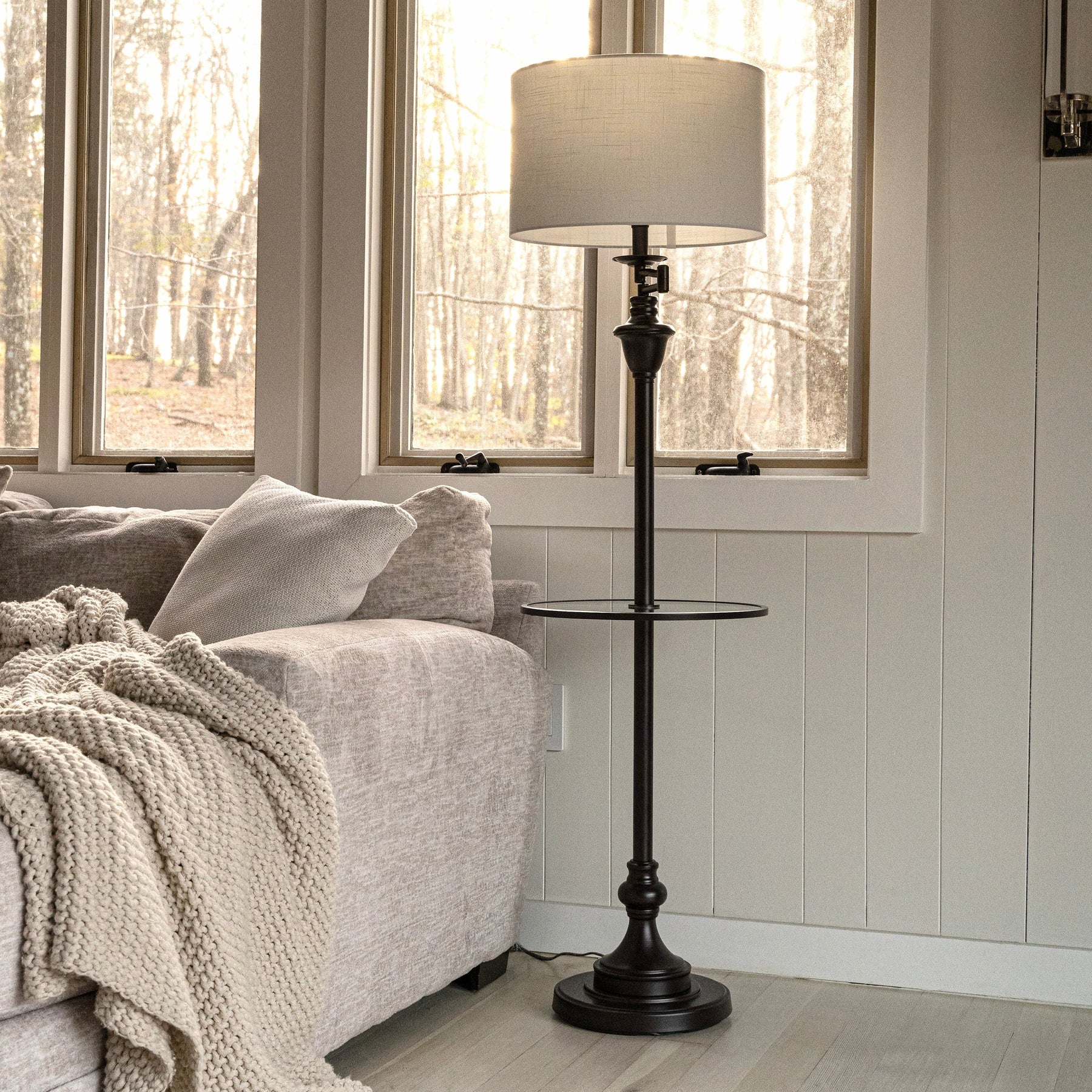 - Tapered linen hardback shade in 100-percent cotton