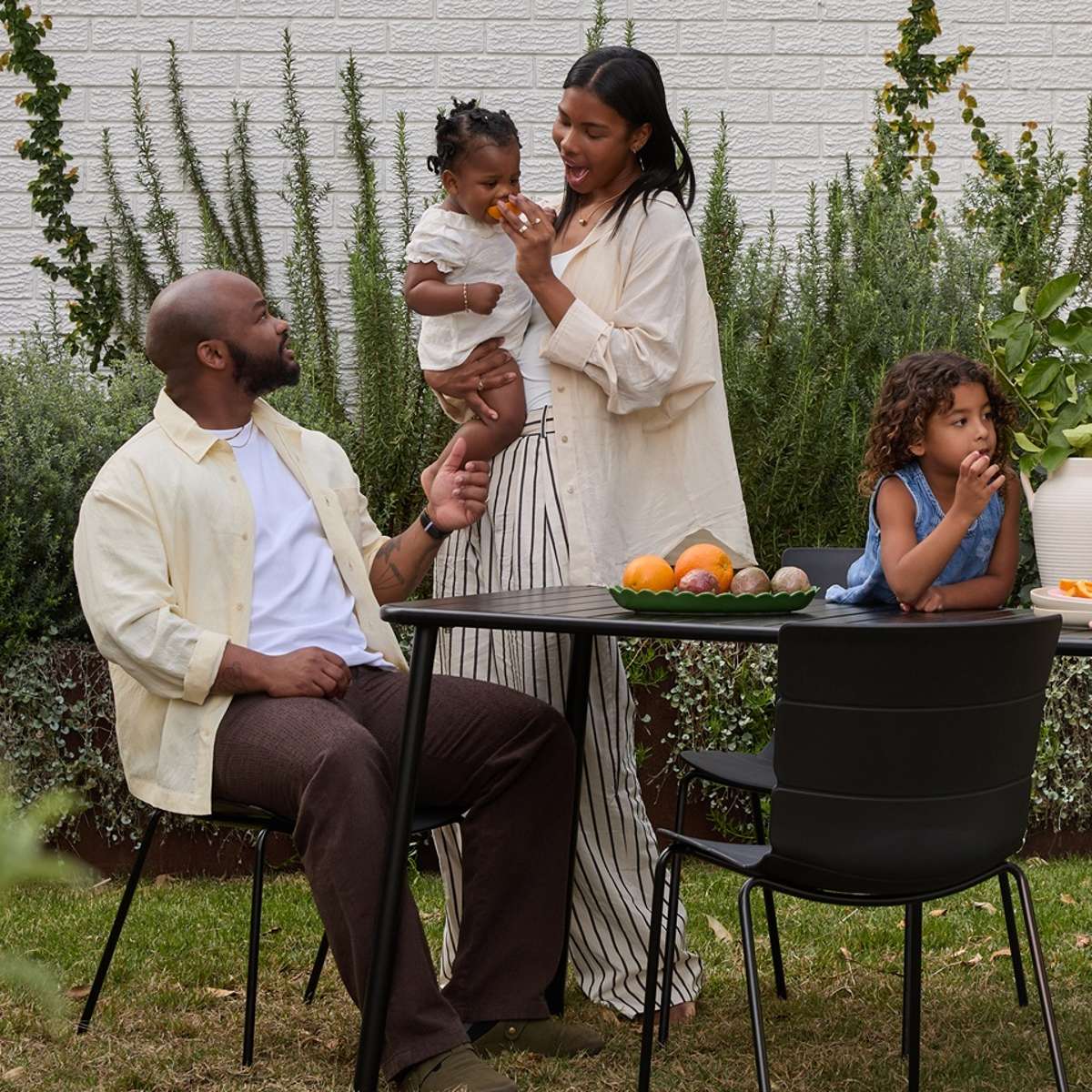The Ravello Dining Table boasts a classic black finish that complements any alfresco space. With its clean and versatile design, it’s perfect for casual family meals or outdoor entertaining.