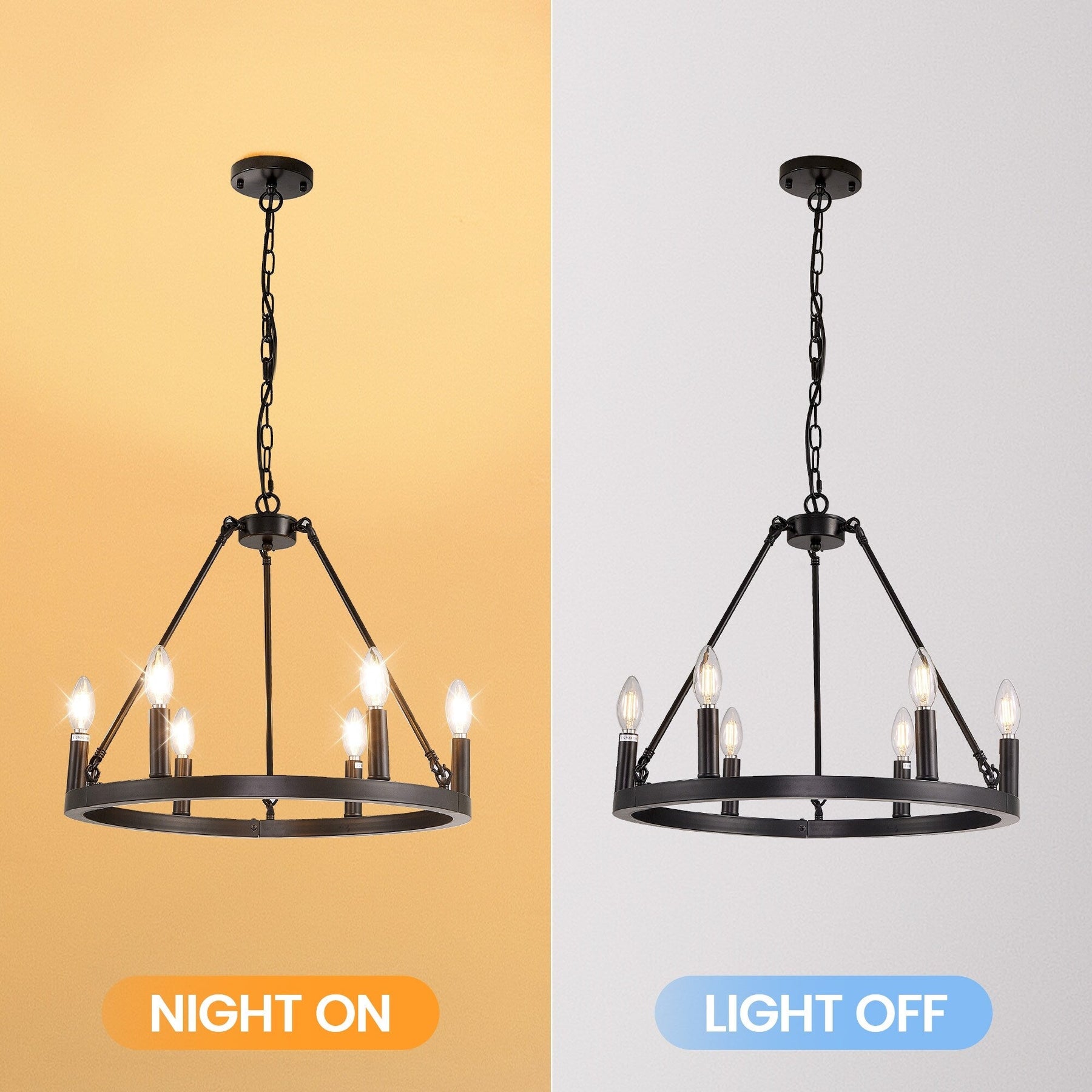 【Height Adjustable Chain】The chain for matte black farmhouse chandelier features can be adjusted in height. The minimum/maximum height of the chandelier chain is 2'- 59'. You can adjust the hanging height of the rustic pendant light according to the ceiling height of your home.