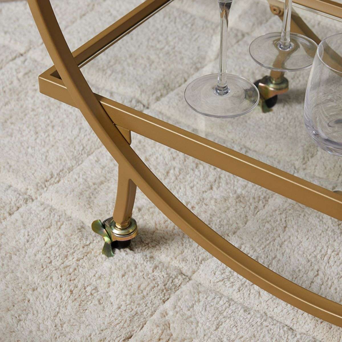 The shelves are wonderfully spacious for all your glassware, bottles, and bar accessories. And because they're both made from tempered glass, they're extra strong. With a handle and four castor wheels, it's easy and smooth to move about. Roll it to your guests and serve them their drinks and snacks - it'll be the talk of the party. Style in your living room, dining room, or home bar for a touch of retro glamour.