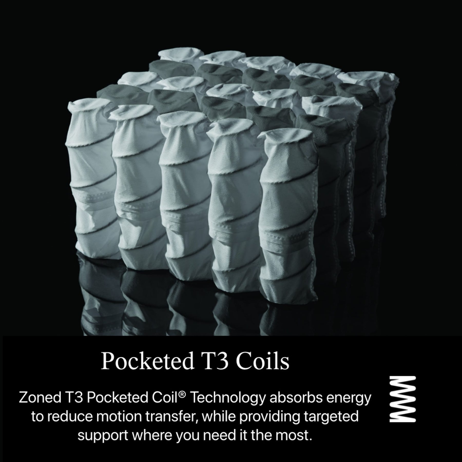 • Premier Pocketed Coils provide targeted support and enhanced pressure relief for your core and back, while absorbing energy to reduce motion