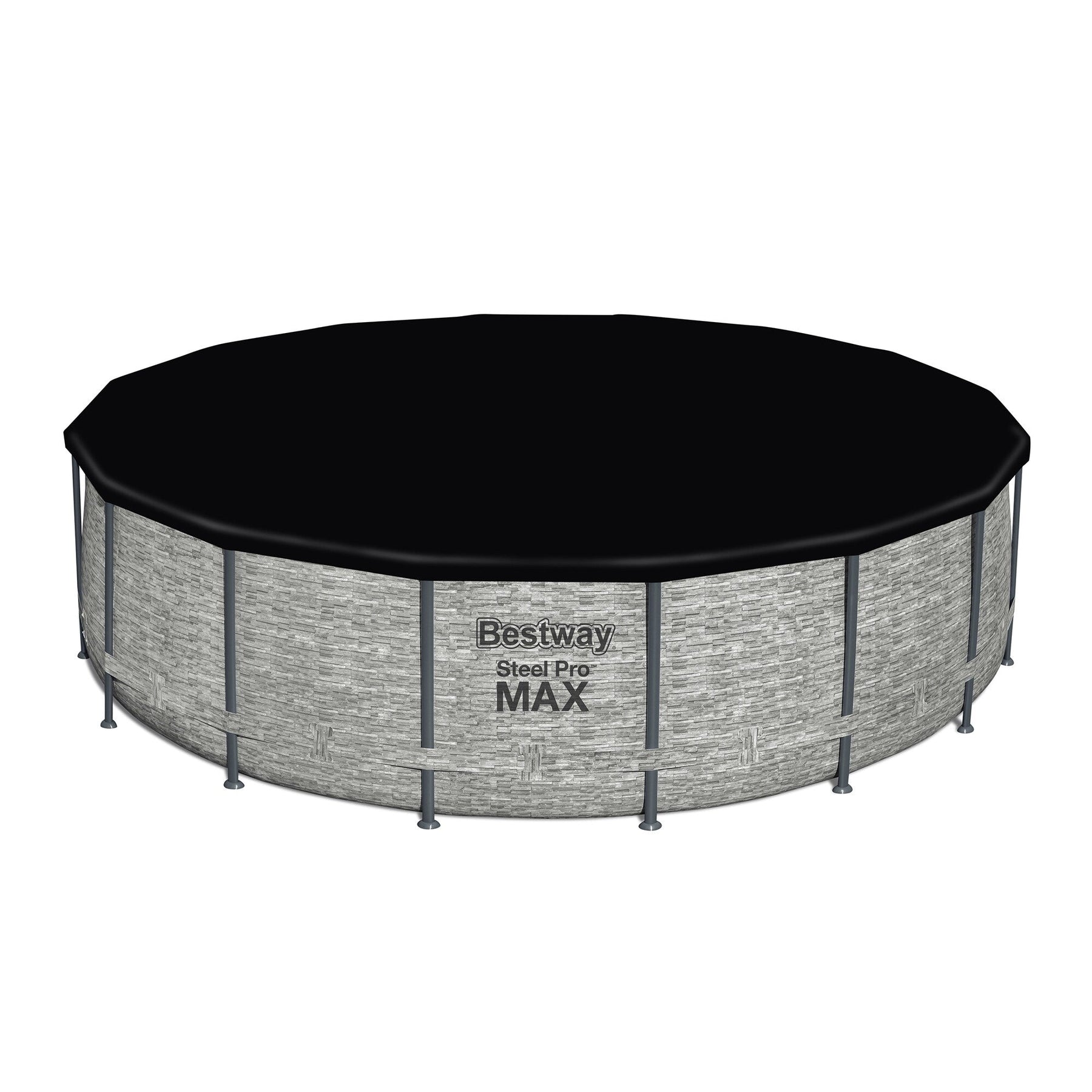 It doesn't get any better than having your own backyard pool! Enjoy a summer full of fun with the Bestway Steel Pro MAX Above Ground Swimming Pool. Featuring an ultra-durable construction, this outdoor swimming pool is made with a corrosion-proof steel frame equipped with a FrameLink System for a sturdy and secure connection. The frame is compatible with additional attachments, such as cup holders (sold separately). With a DuraPlus liner, this pool is reinforced for strength and prevents punctures. Including a filter pump, ladder, and pool cover, you'll have everything you need for the perfect pool day. Equipped with a simple setup and take-down process, you can easily store this pool away in the off-season. No tools are required, and a hose connects to the built-in flow control valve to quickly and efficiently drain out the pool water. Spend your hot summer days in the water with the Steel Pro MAX Above-Ground Swimming Pool from Bestway. Disclaimer: Please review your HOA rules and restrictions before purchasing this product. Not all housing agencies permit private above-ground pools.