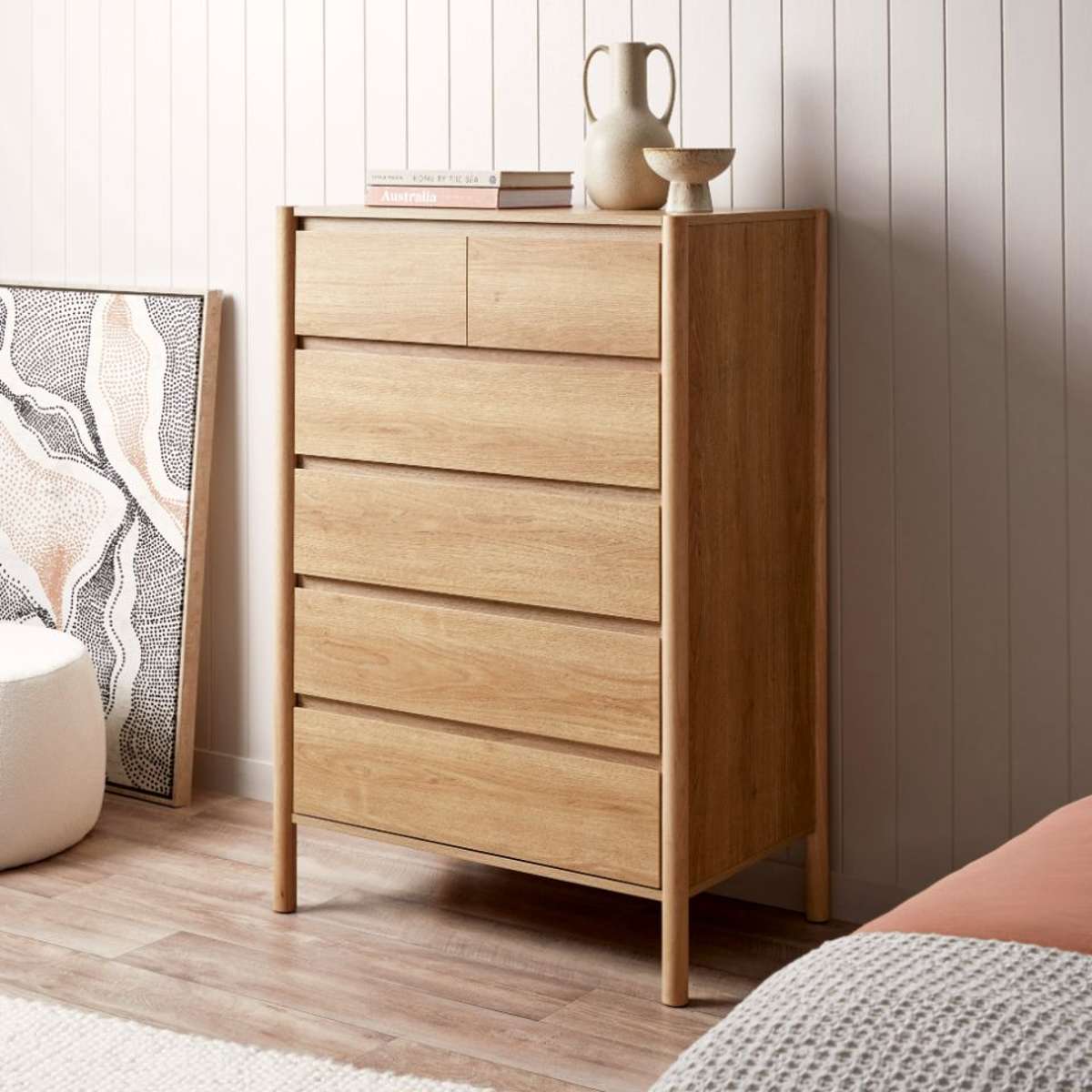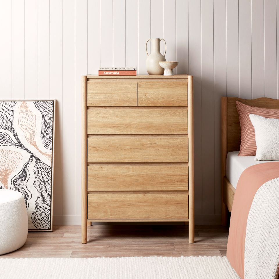 Blair Tallboy's clever design combines two smaller drawers up top with four larger ones below. This mix gives you perfect spots for everything from socks to jumpers, keeping your space tidy and organised.