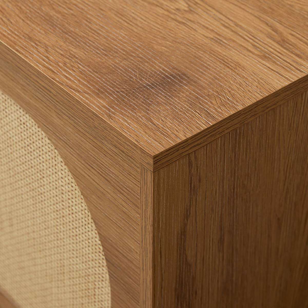 Add rattan-look style to your living room with the Canyon Entertainment Unit - Large. Featuring a wood-look finish and arched rattan-look panels on the sliding doors, it's an on-trend statement piece that can't be ignored.