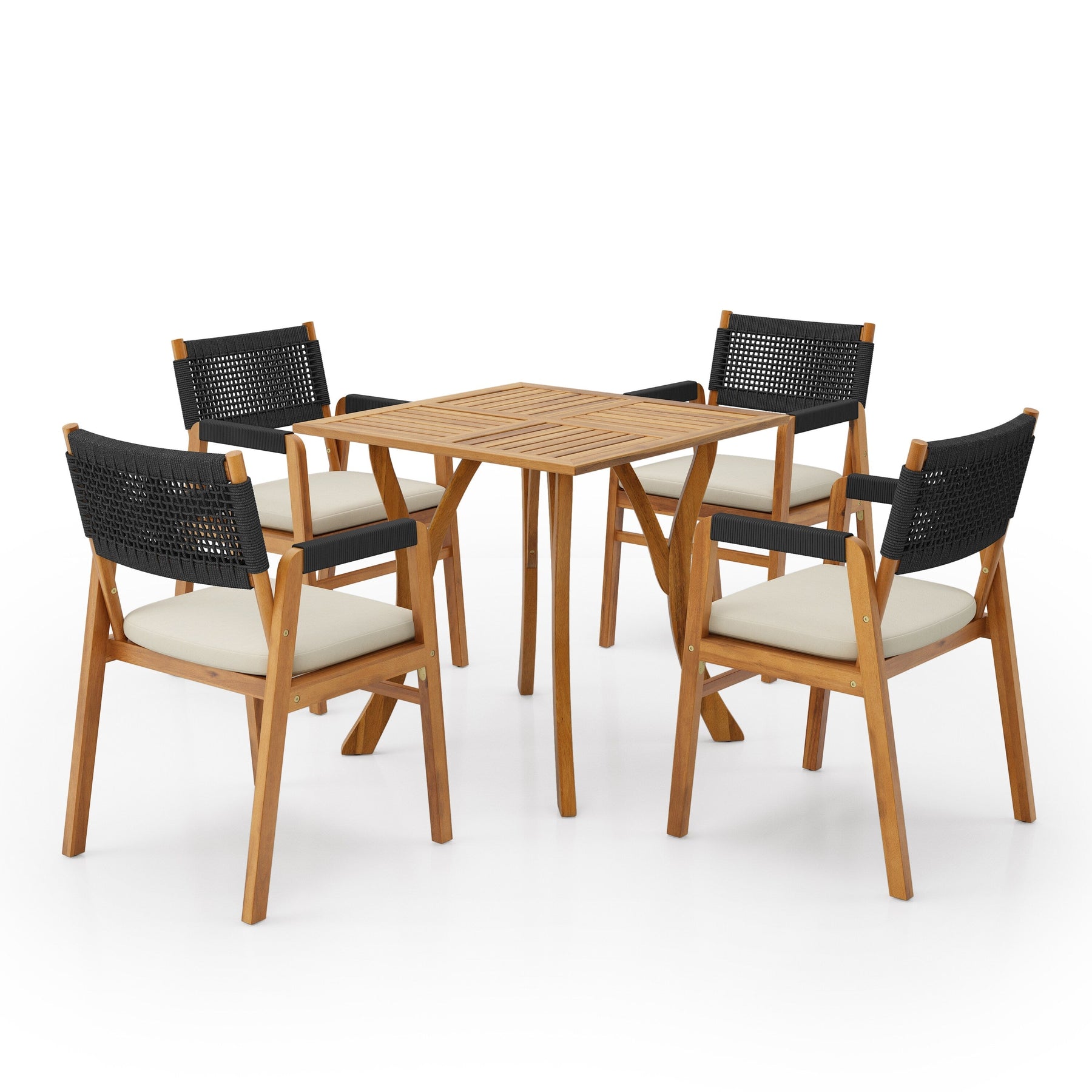 Durable Acacia Wood Construction:Crafted from premium acacia wood, this set features a sleek, exotic look that naturally resists the elements and won't darken over time. The solid hardwood frame ensures long-lasting durability and is perfect for withstanding wear and tear, making it ideal for outdoor use.