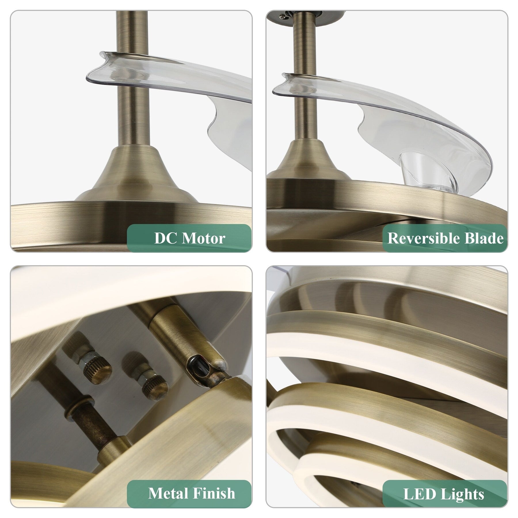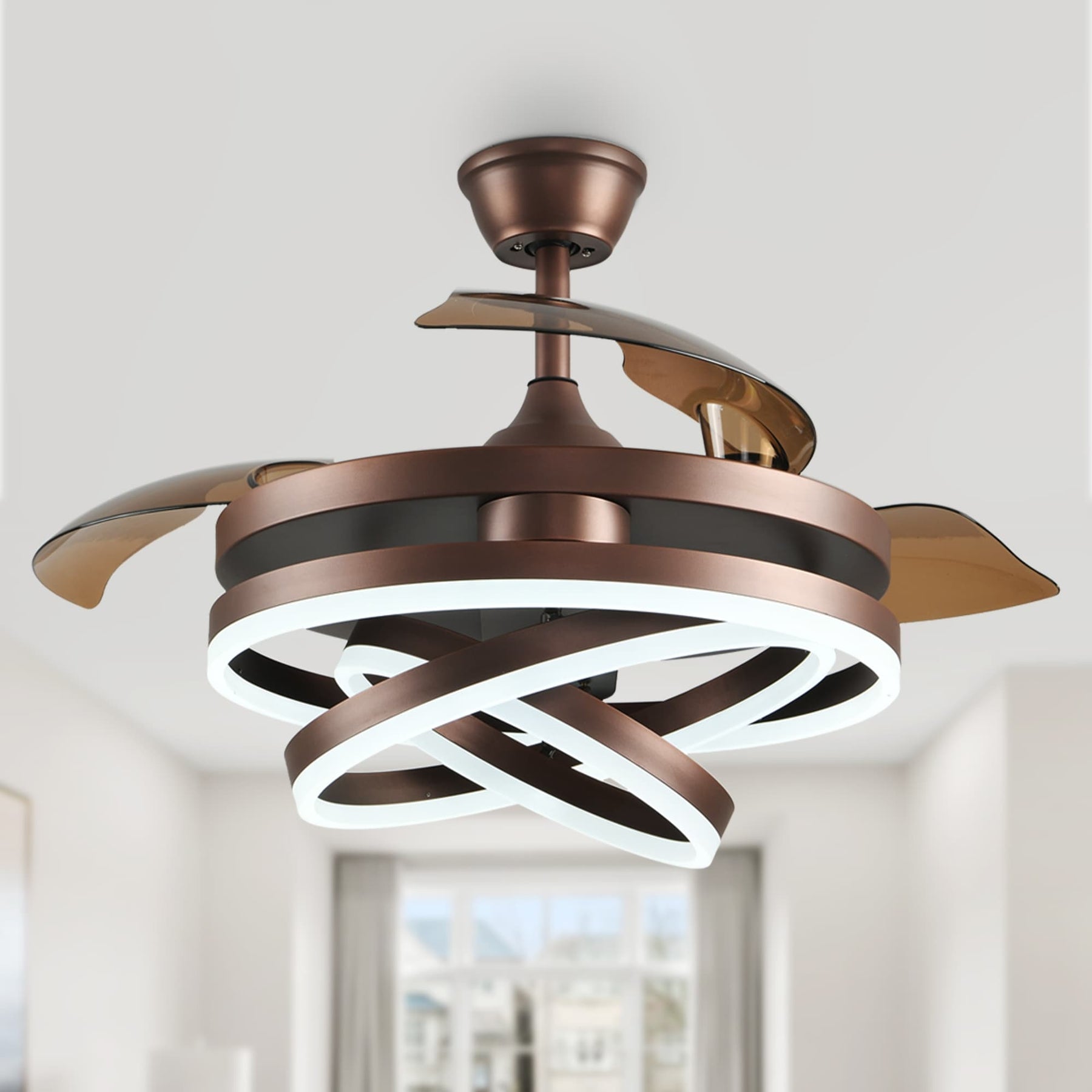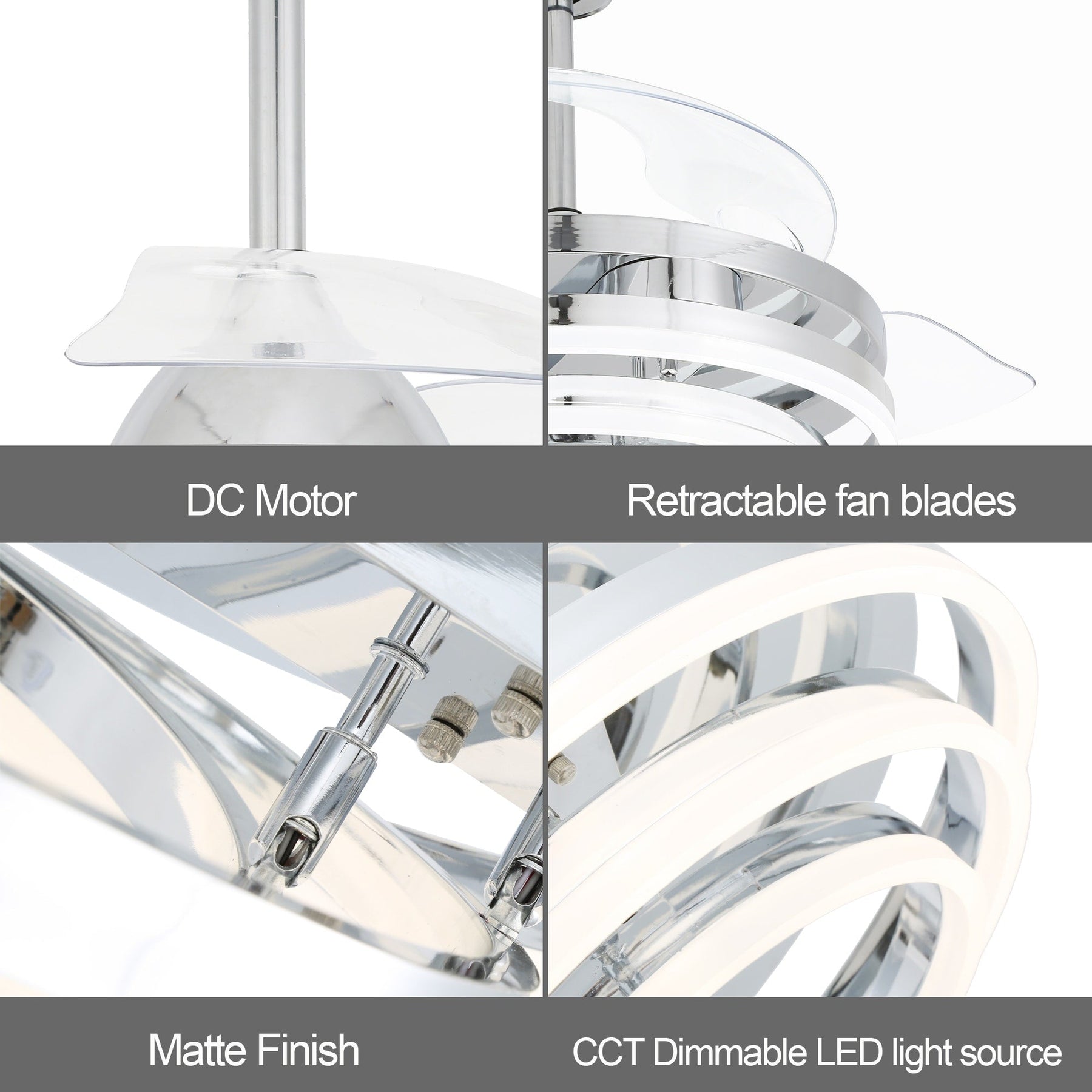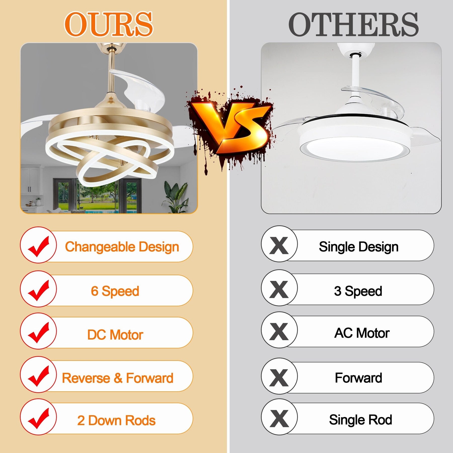 Cusp Barn 42 Retractable Ceiling Fan with Lights and Remote DIY Shape Fandelier Modern Silent DC Motor LED Ceiling Light