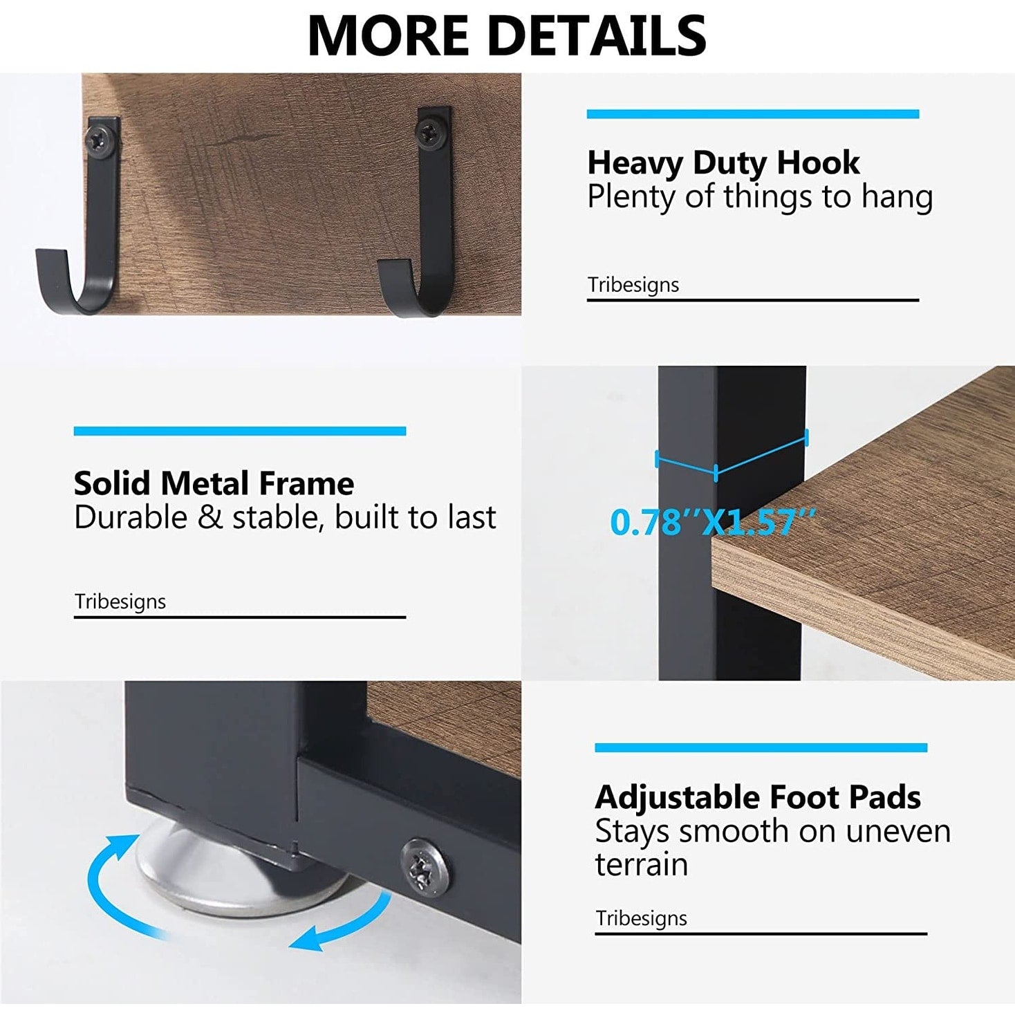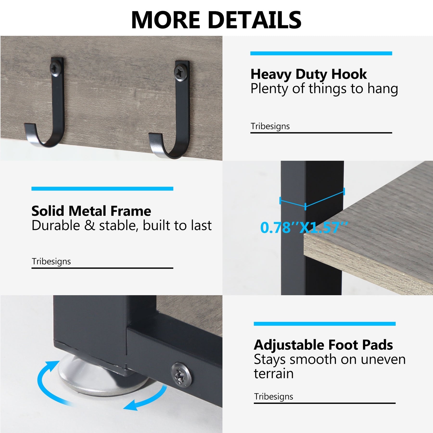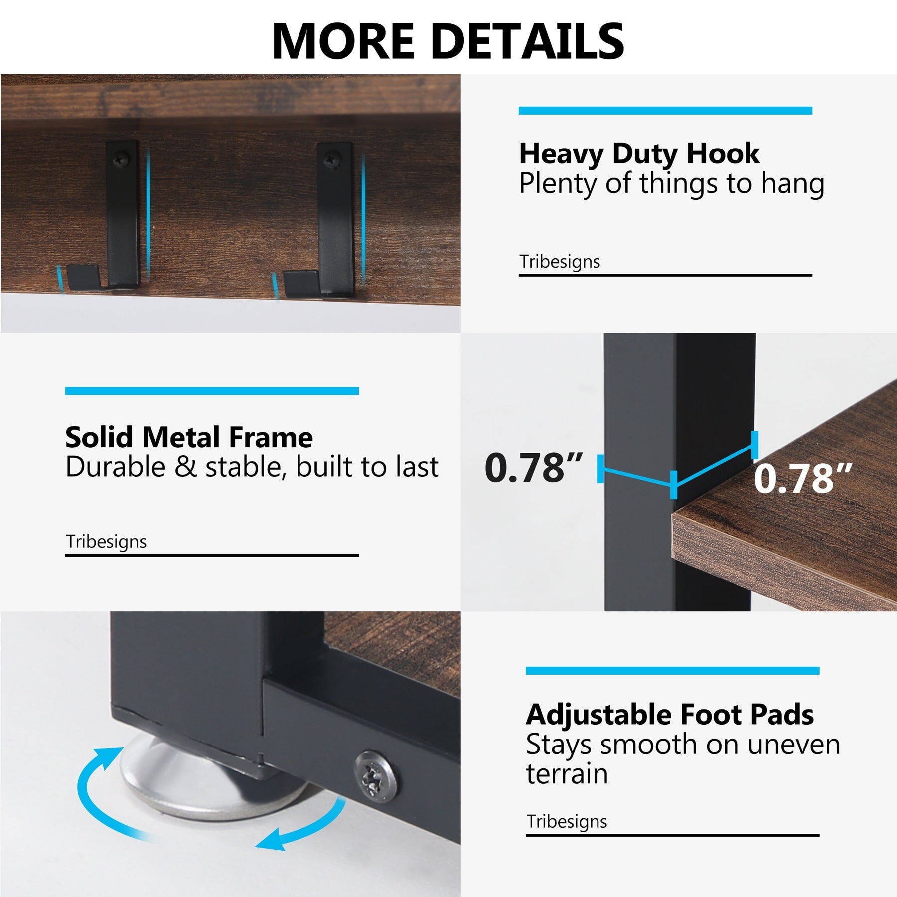 Organize your entryway in style with this charming industrial coat shoe rack. With a sophisticated and rustic appeal, it can match perfectly with other furniture in your home and add a vintage charm to your space. This multifunctional hall tree with bench is not just a coat rack, but also a shoe bench and storage rack, making it perfect for entryways, hallways, foyers, bedrooms, and living rooms.