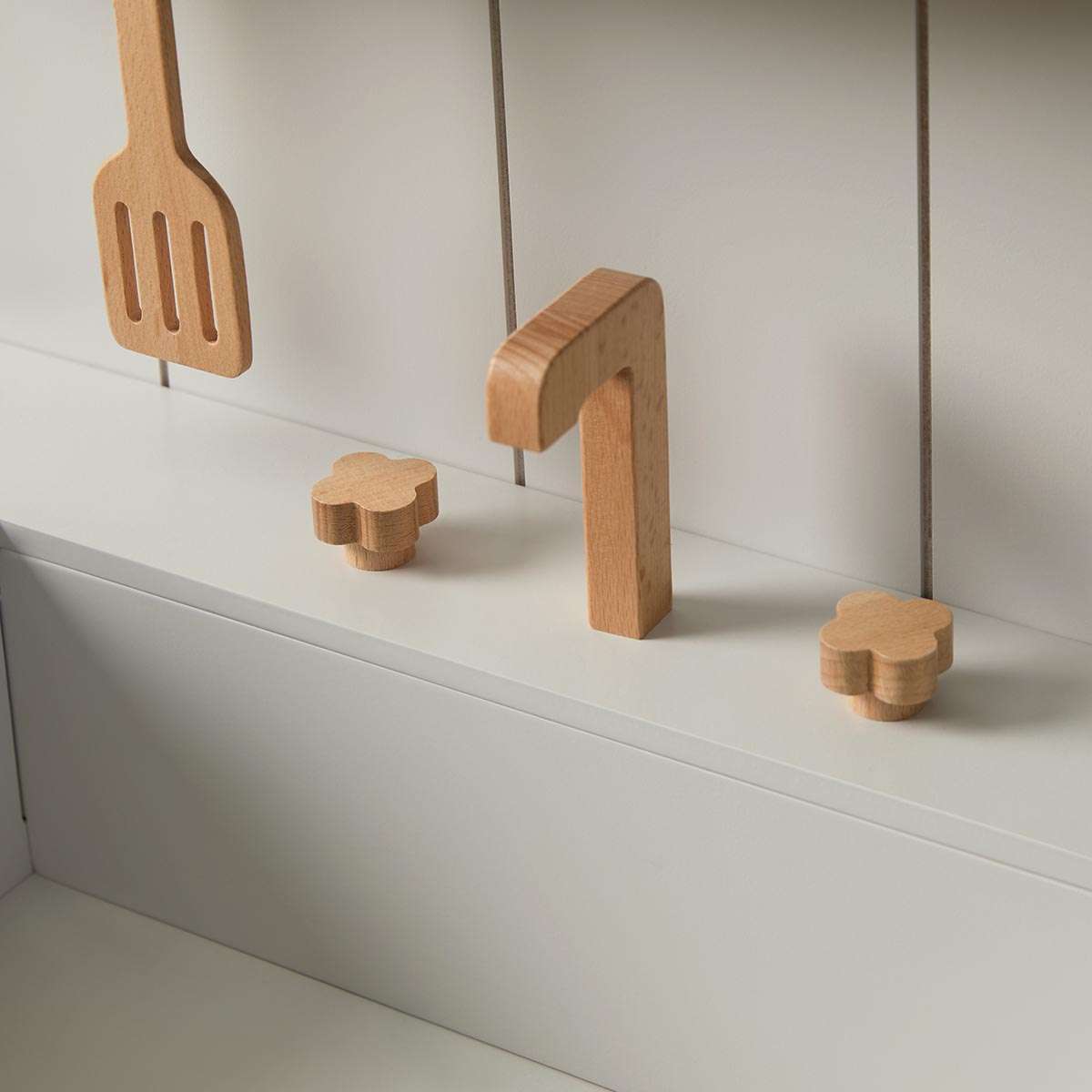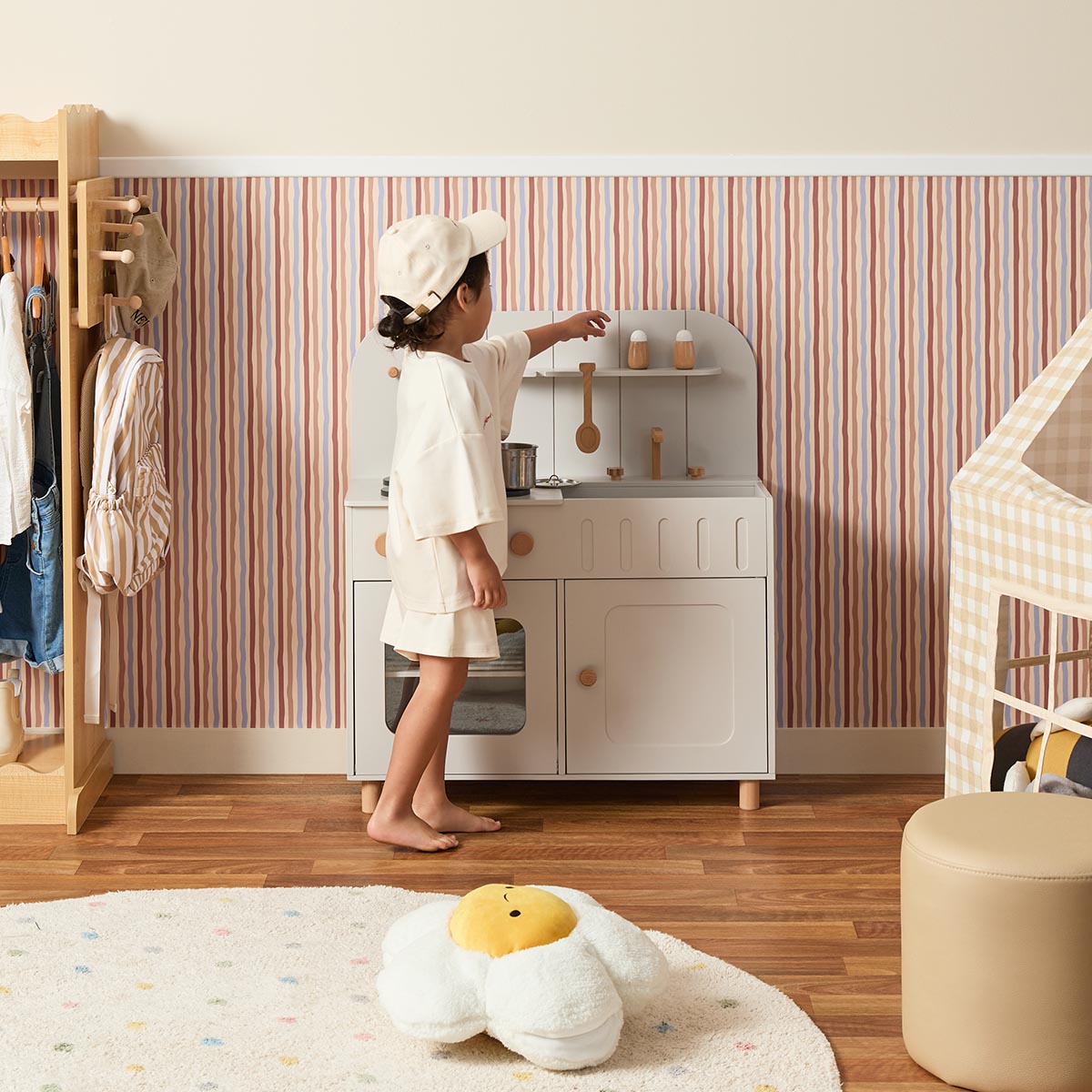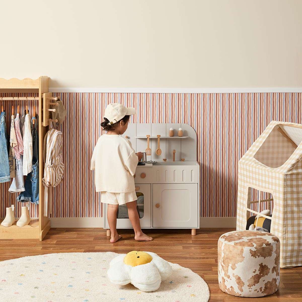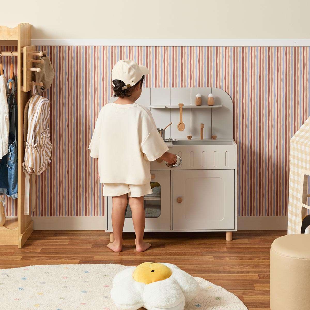 Bring farmhouse charm to your child’s playtime with the Mocka Farmhouse Kitchen. Featuring a putty beige finish, natural pinewood accents, and an on-trend apron sink, this mini kitchen is perfect for sparking your child's imagination. Complete with utensils, steel pots, and tidy storage, it’s both practical for playrooms or bedrooms, and endless fun for your little chef.