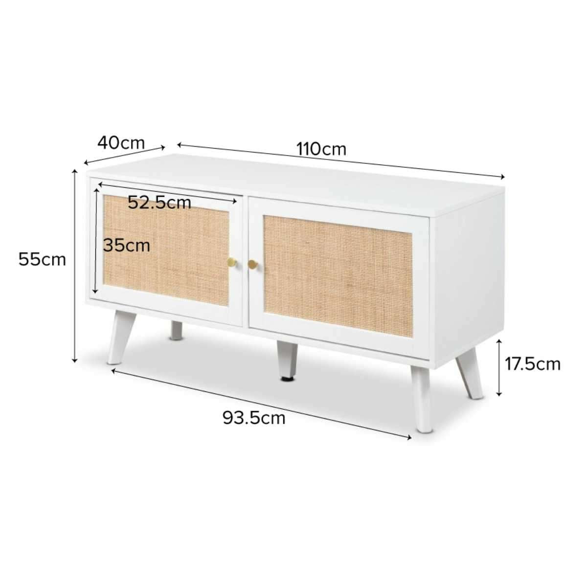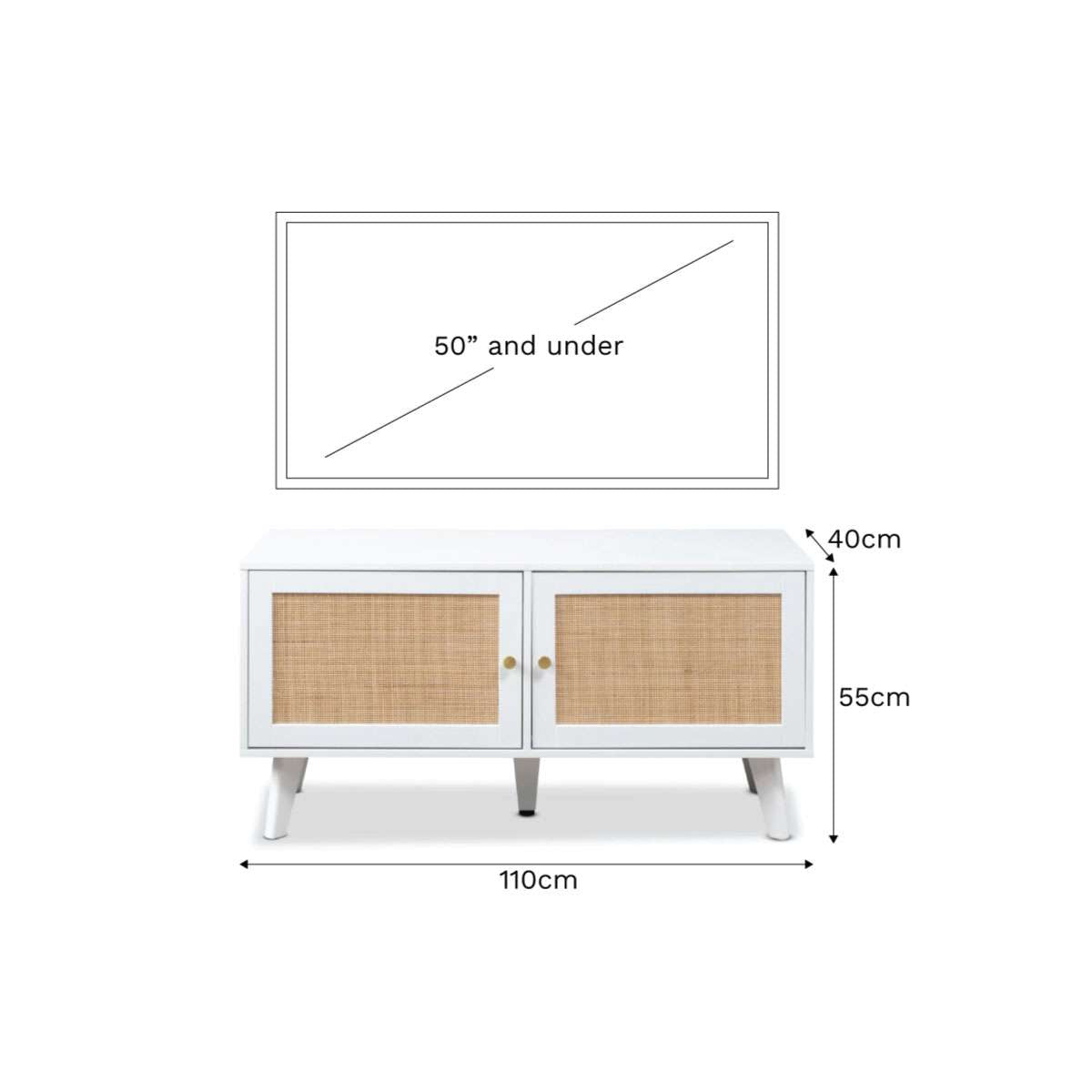 Add the organic beauty of rattan to your living room with the Georgia Entertainment Unit. Offering a light and bright painted white frame, with weaved rattan panels inlaid in the cupboard doors, this small entertainment unit is a great way to add natural texture and interest to a living room. The surface is ideal for placing your entertainment devices on top or to style with decor when positioned under a wall-mounted TV. Use the two, handy cupboards to tidy away cords and entertainment essentials so you can keep your living spaces effortlessly tidy.