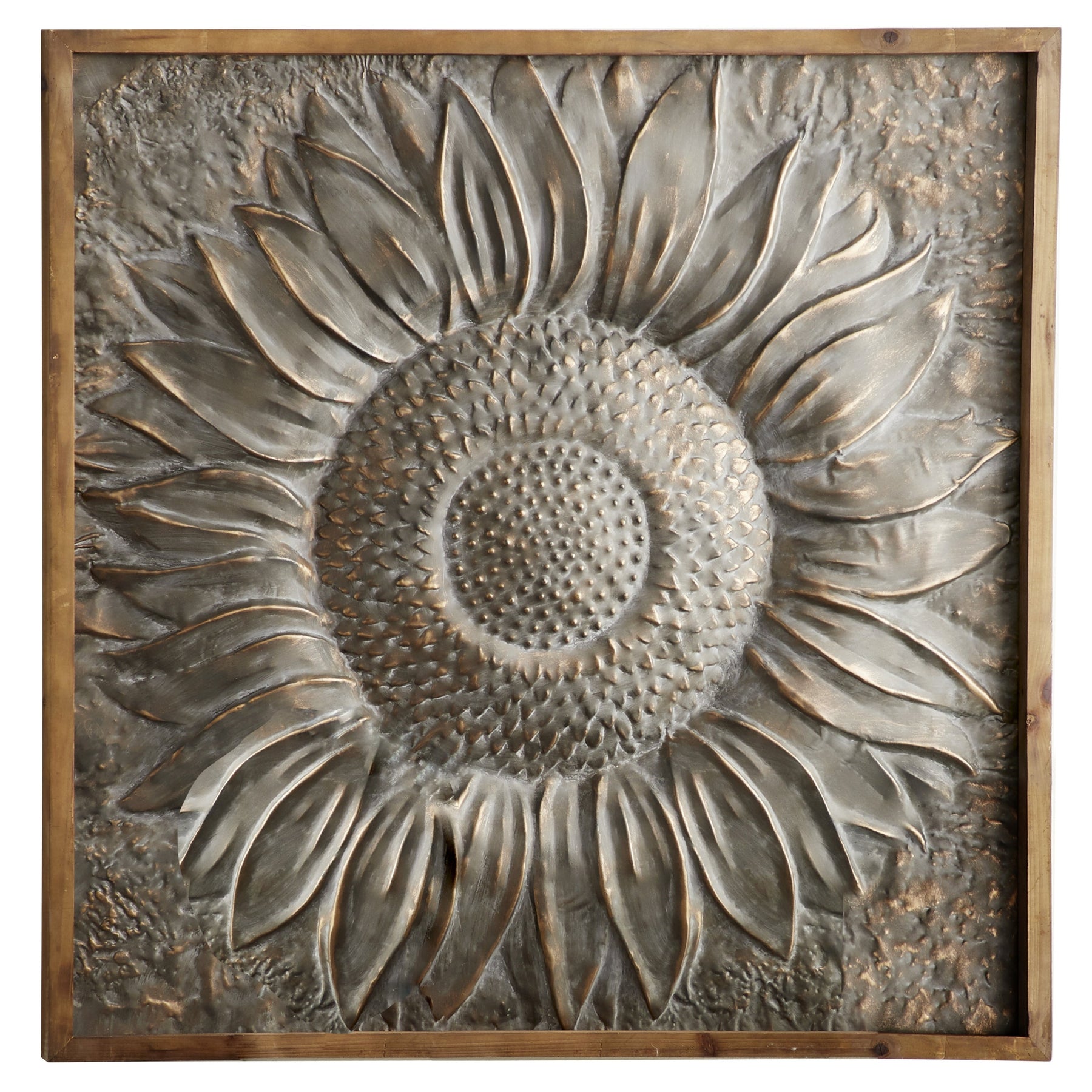 Metal Floral Sunflower Wall Decor with Embossed Details - Gray - Roche River Decor