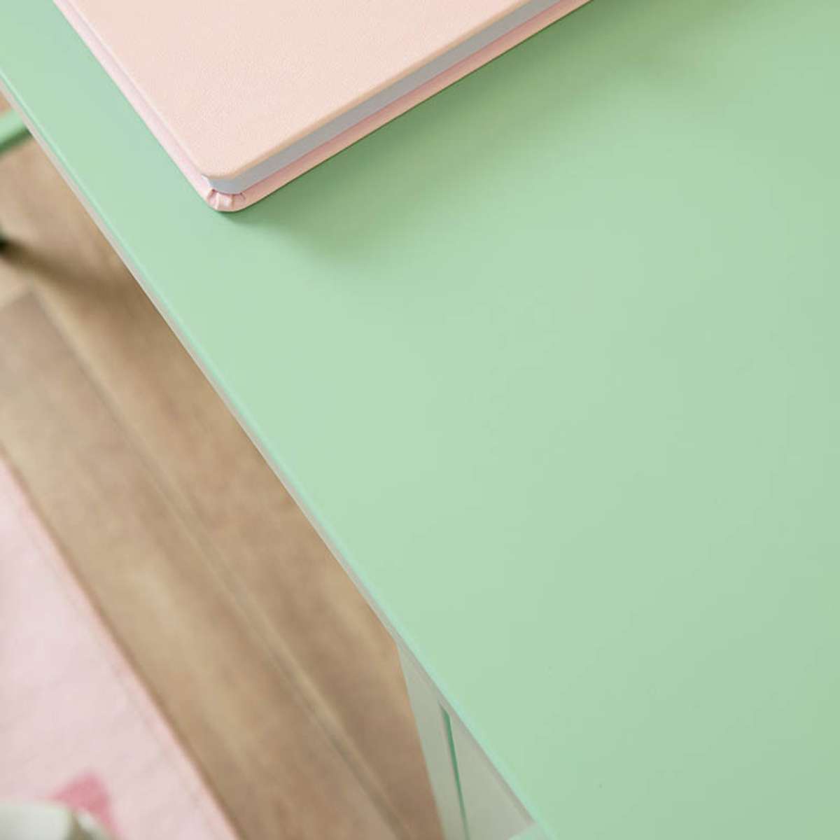 The desk’s mint green colour adds a fresh touch to any room. It matches perfectly with other colours like pink or steel to create a unique, personalised space.