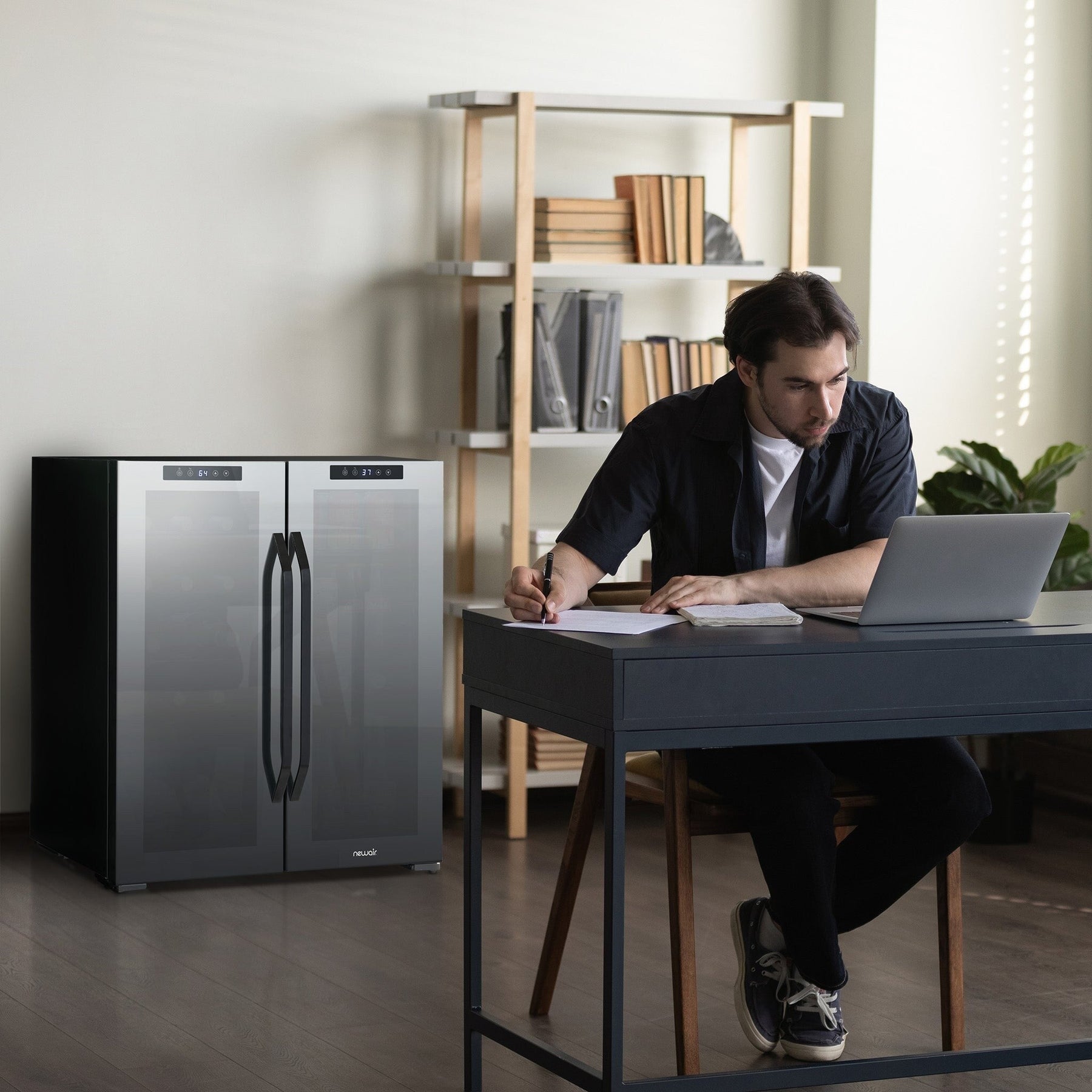 Newair Wine and Beverage Refrigerator, 18 Bottles & 59 Cans, Dual Temperature Zones, Freestanding, Digital Temperature Control