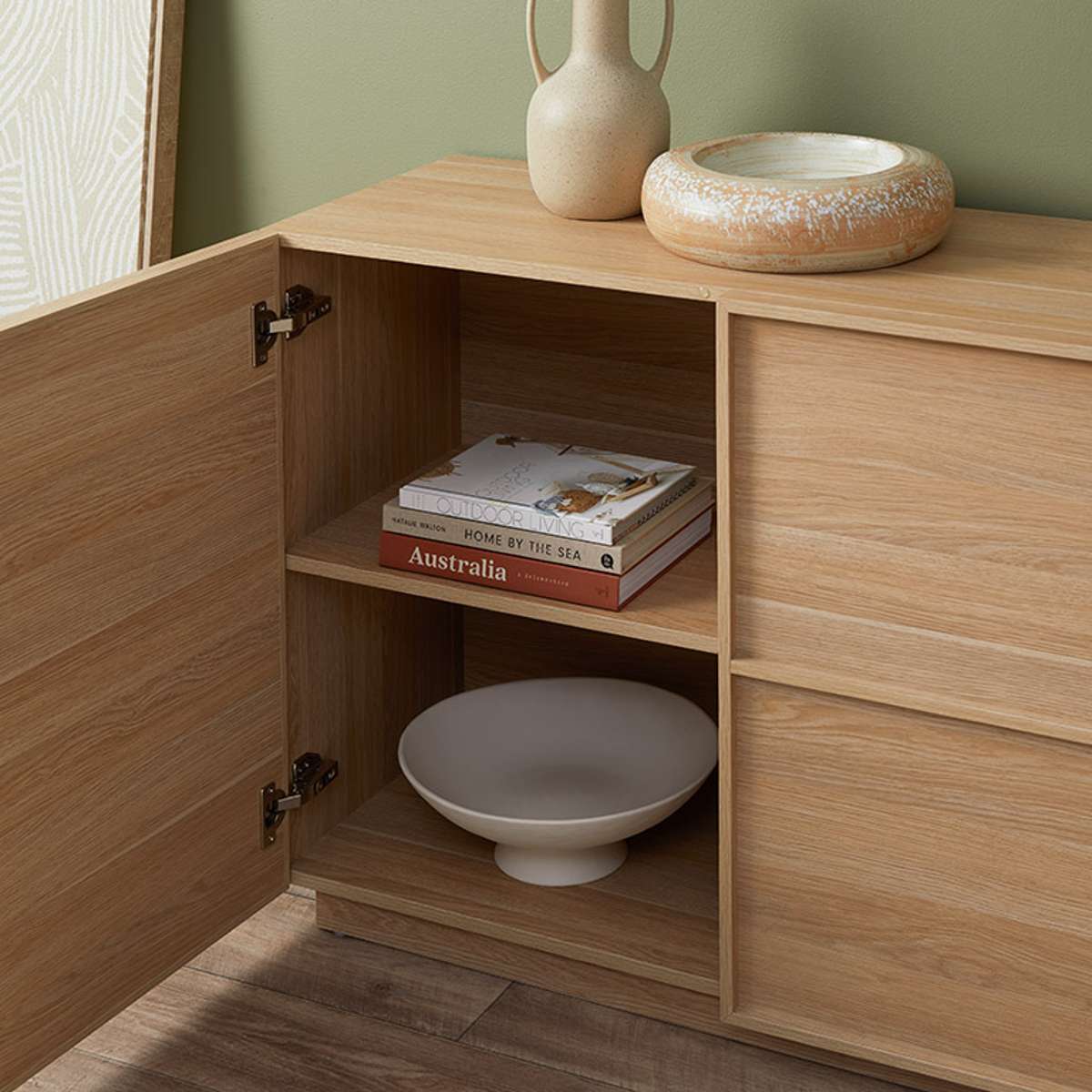 With its Scandi-inspired aesthetic, the Osaka Buffet - Natural brings a minimalist yet warm feel to any room. Its light oat finish effortlessly complements modern and contemporary decors.