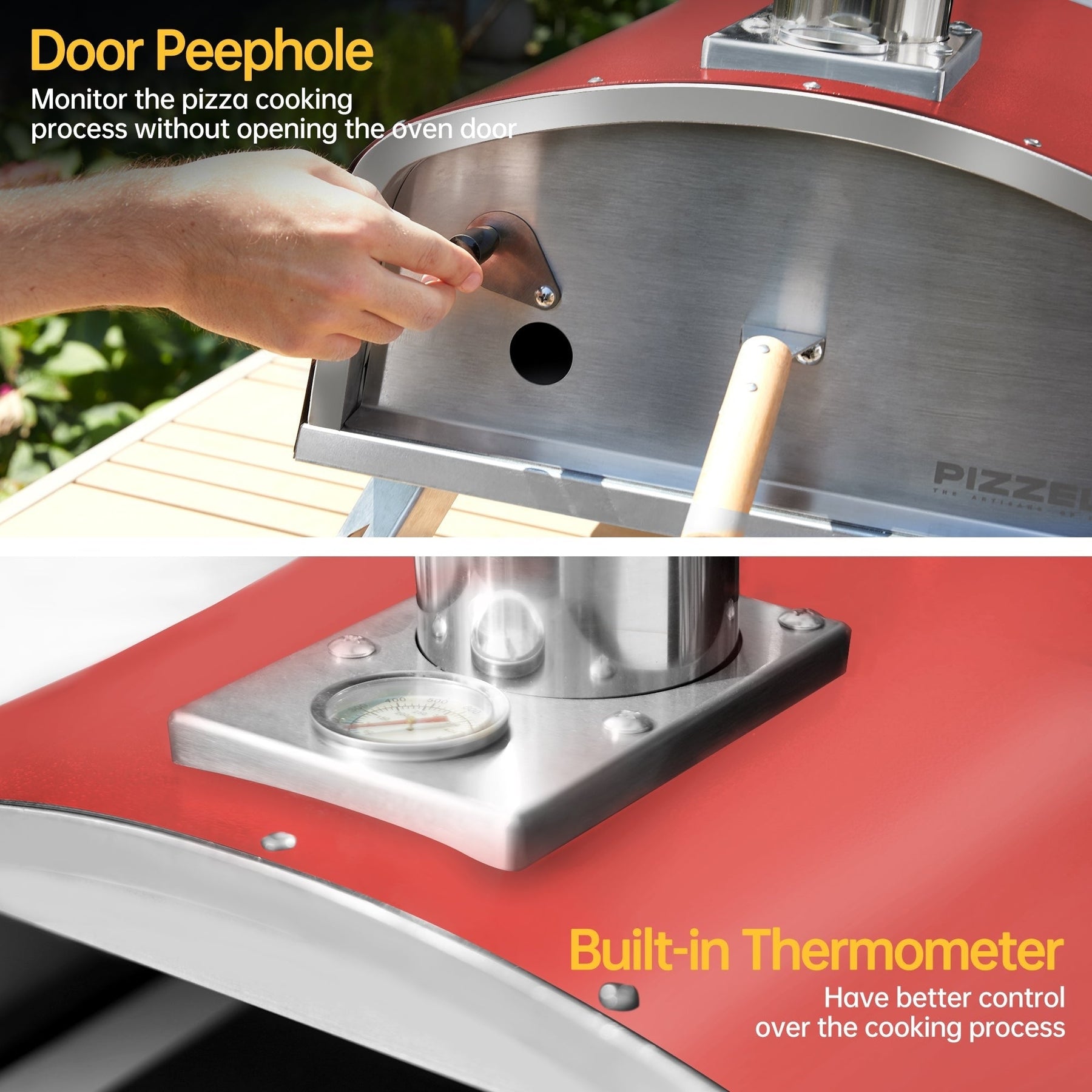 Our 16' wood pellet pizza oven is designed for exceptional versatility and convenience. Compatible with wood pellets, the outdoor pizza oven quickly reaches 752℉ in just 20-25 minutes, ideal for cooking a perfect pizza in 60 seconds. Its portable design features a handle and foldable legs for easy transport, complemented by a built-in thermometer for precise temperature control. With double walls and a stainless steel inner liner of the portable pizza oven, heat retention and cleaning are effortless. Beyond pizzas, it caters to diverse cooking needs.