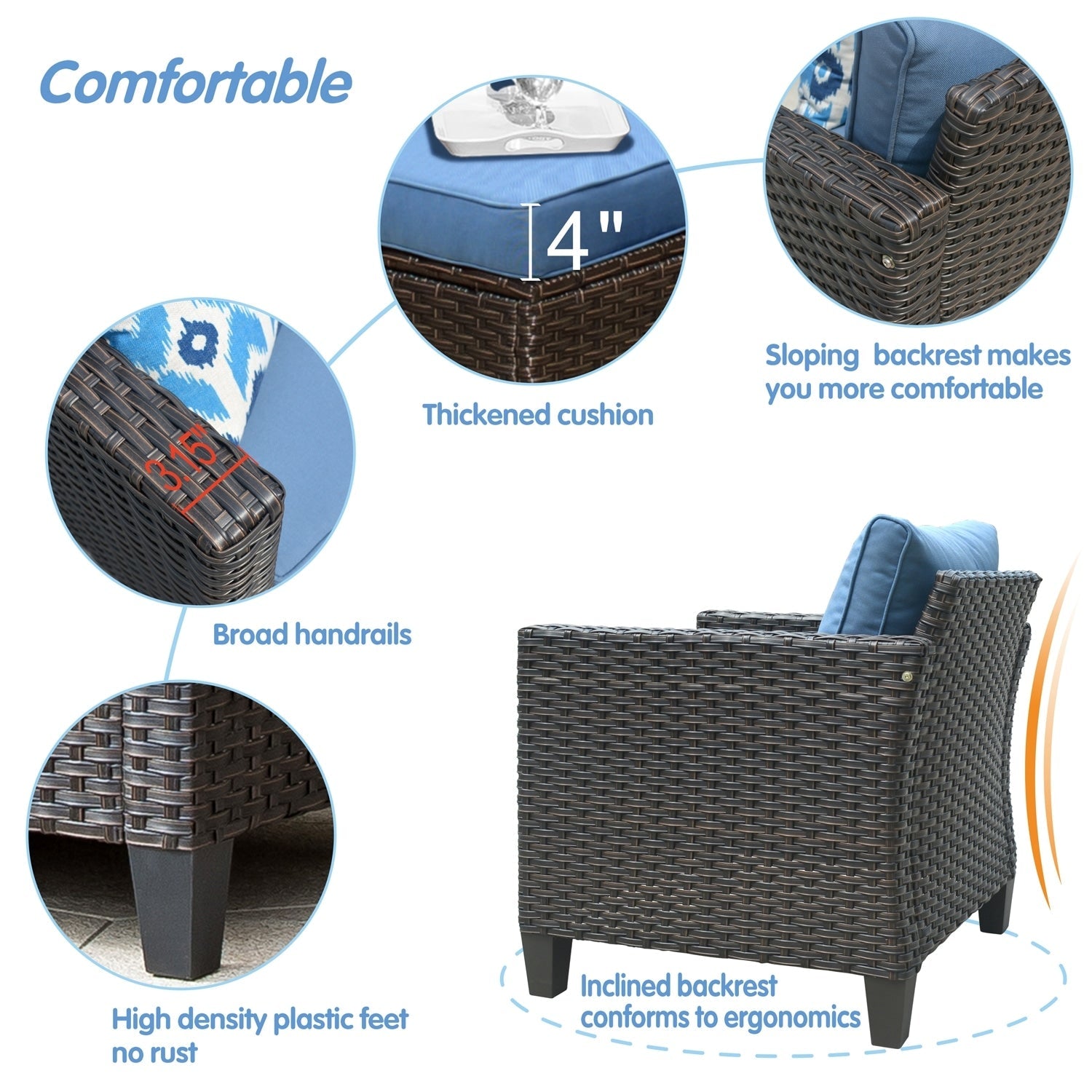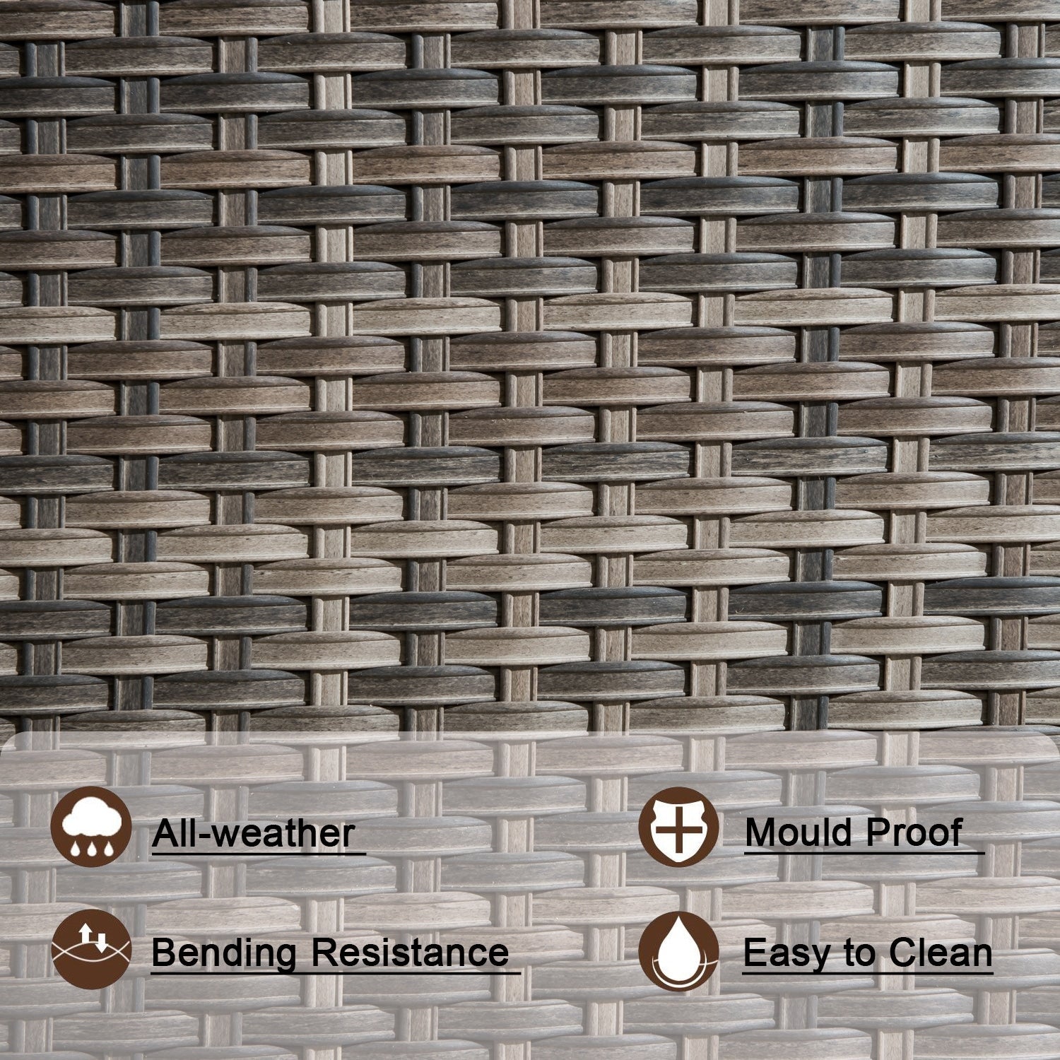 Durable Wicker Design: The sturdy, all-weather wicker construction ensures long-lasting durability, resistant to fading and damage from the elements. This set is built to withstand the outdoor conditions for years to come.