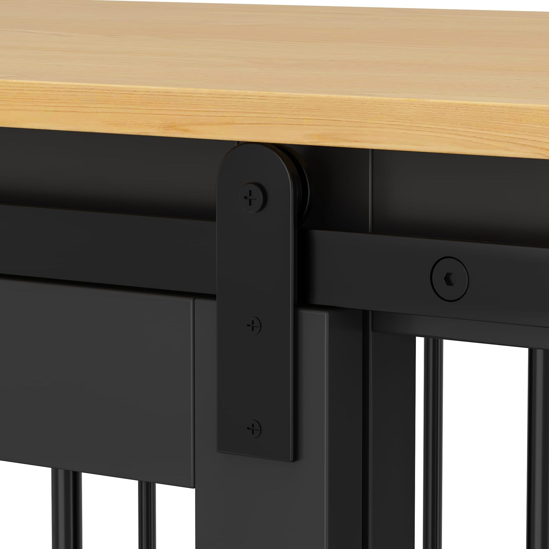 Assured Safety and Stability: Featuring solid iron bars, the crate allows your pets to stay engaged with family life while ensuring they're secure. A lockable barn-style door adds a layer of security, preventing any slips or escapes.