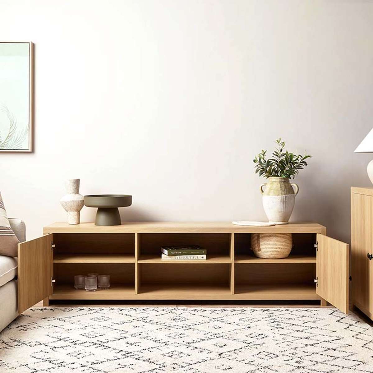 Organise your space with 2 spacious cupboards and 2 open shelves. Store games, DVDs, or showcase your media devices. Each space allows easy access and clutter-free living.