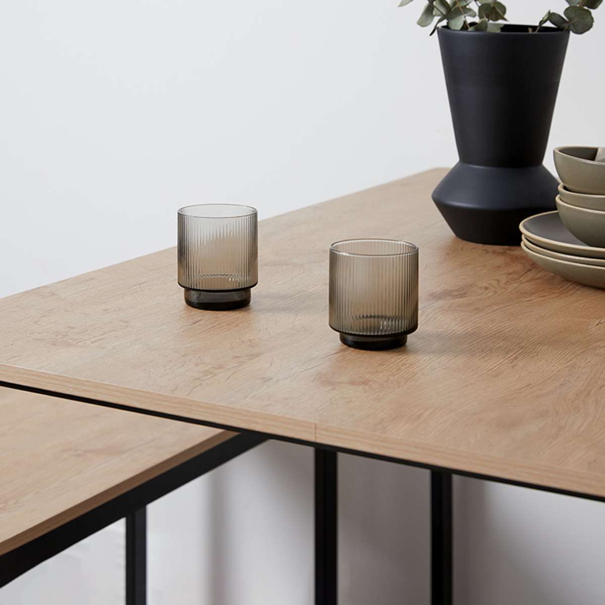 Crafted for apartments and breakfast nooks, the 1.2m table offers ample dining space while maintaining a chic and compact profile. Its powder-coated metal legs provide stability and a sleek contrast to the wood-look tops.