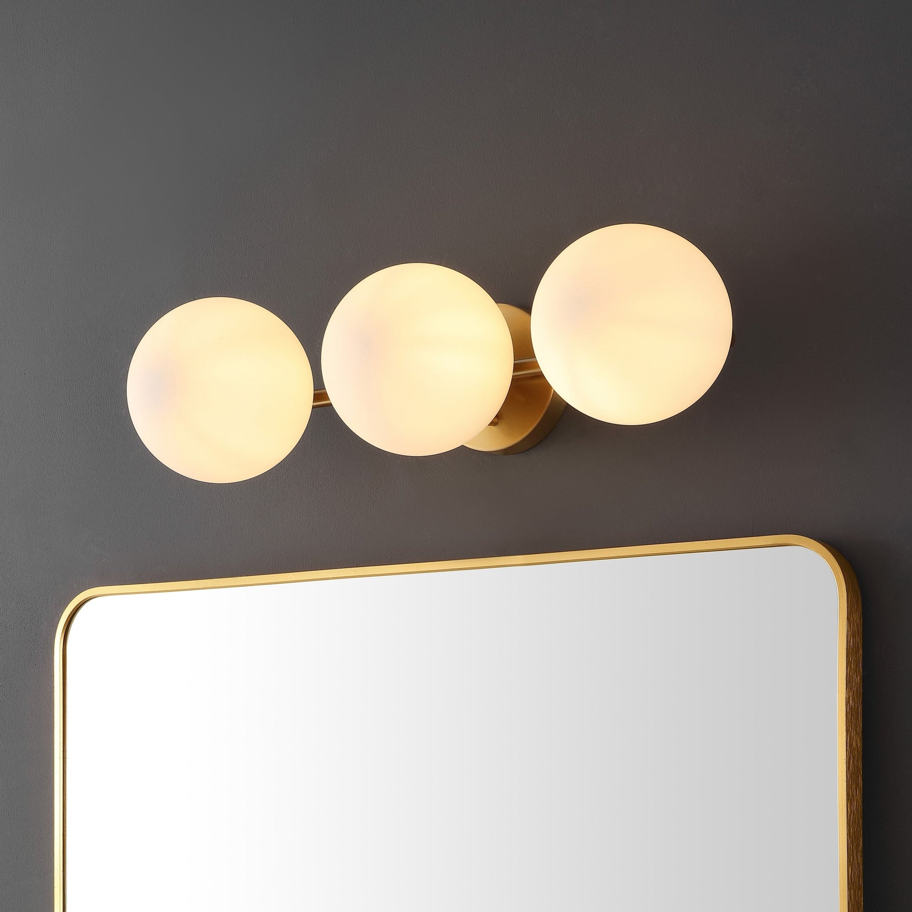 Brighten up your home with our sleek and charming Johari wall sconce. The clean lines and sophisticated details of our wall scone bring timeless elegance to any room. A beautifully detailed arms extend from a rectangular back plate. It extends three stunning cylindrical glass shades to attain a sleek and sophisticated look. Each glass shade is textured to diffuse light and lend an inviting glow. Completed in a brass metallic finish, our triple wall sconce remains a sleek and elegant way to upgrade your bedroom, hallway, or bathroom.