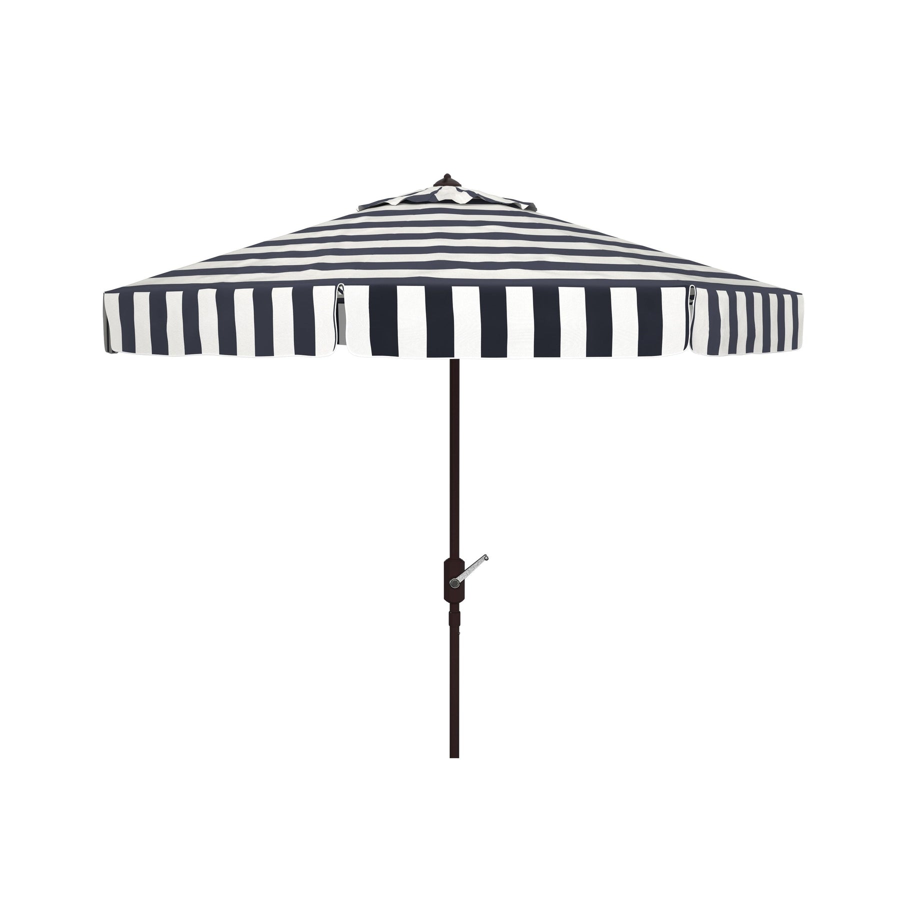 Inspired by the healing waters in a luxurious health spa in Germany's village of Baden Baden, this stylish eleven foot Round Umbrella is a favorite for those who love a touch of Euro flair. The always in fashion and white stripes keep it classic, while its elegant trim gives it a subtle modern update.