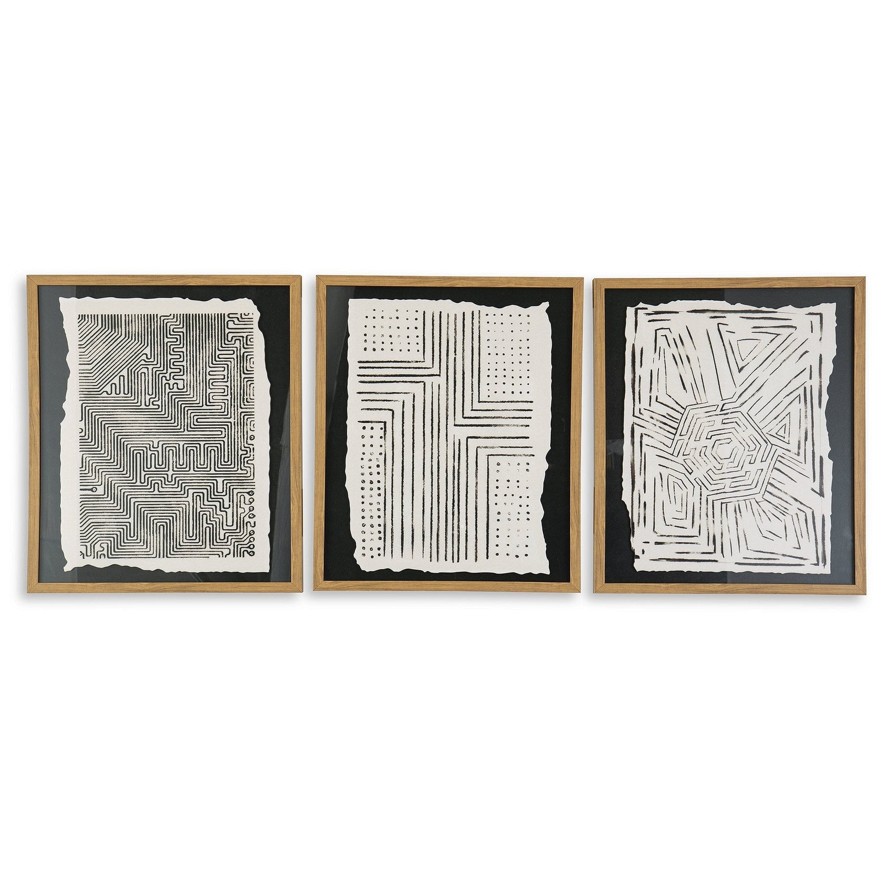 Master minimalism and movement with the Wonderstow wall art set. The geometric designs provide a pop of pattern for visual interest, while black and beige keep your color palette grounded. Place the three pieces together or hang them separately to keep a consistent aesthetic across multiple rooms.